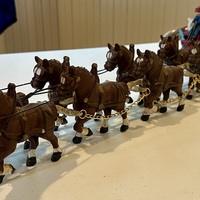 Grey Iron, Clydesdale horses with wagon carrying beer kegs, toy