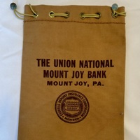 The Union National Mount Joy Bank, Brown, Canvas Drawstring Money Bag, Member Federal Deposit Insurance Corporation, $5,000 Maximum for each…
