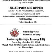 Mount Joy Area Historical Society, BBQ, Tickets Harvey's BBQ, JB Hostetter & Sons