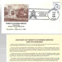 Forry's Covered Bridge First Day Cover Stamp Club, August 10, 1985, Mount Joy Stamp Club, Stamp Show, Elias McMellen, Civil War, November 23, 1839,…