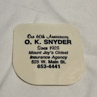 O. K. Snyder, hand ice scraper, 60th Anniversary, Insurance Agency, 1928