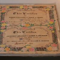 Marriage Certificate 1904 Joseph Brandt and Anna Zeager