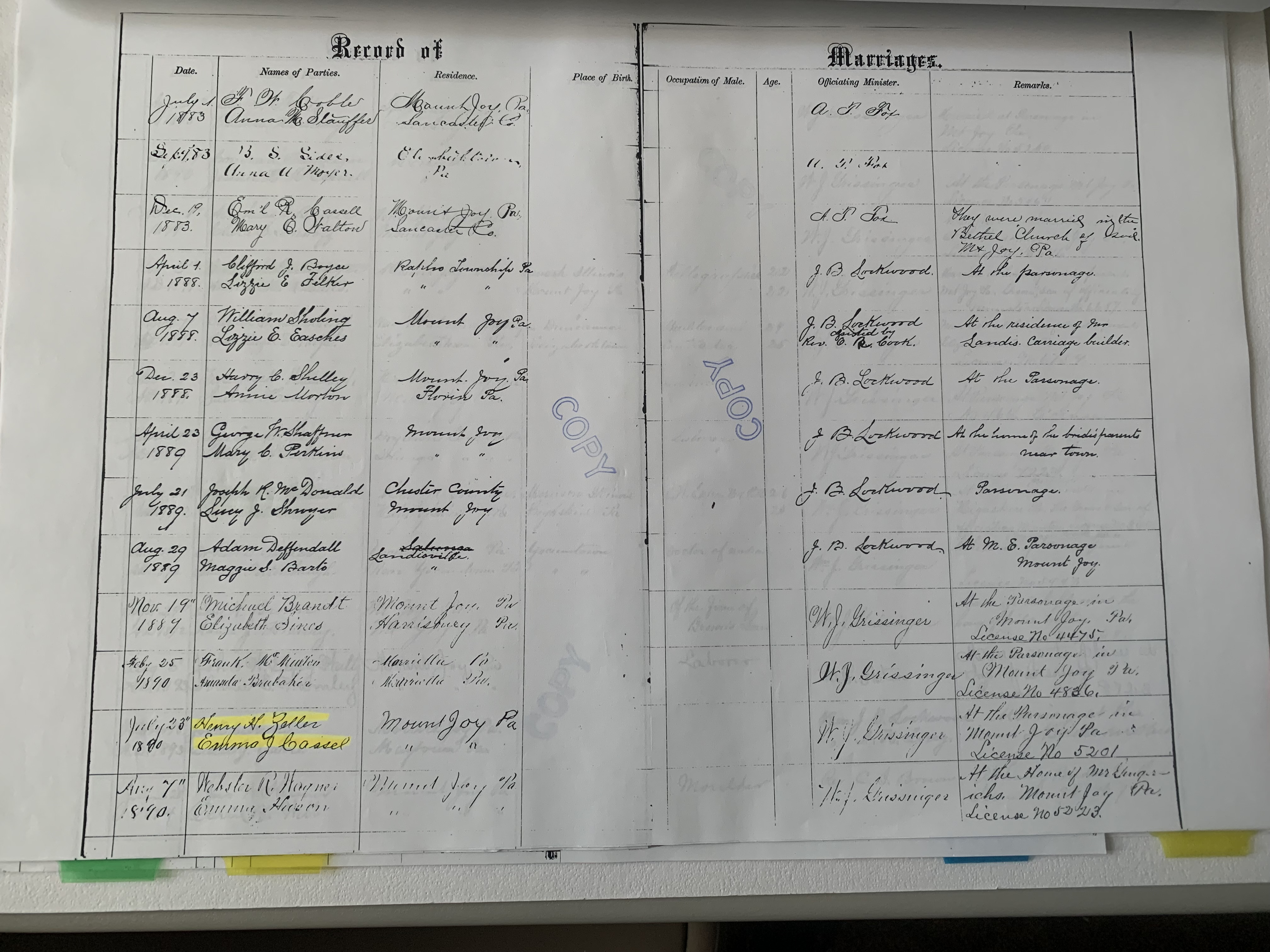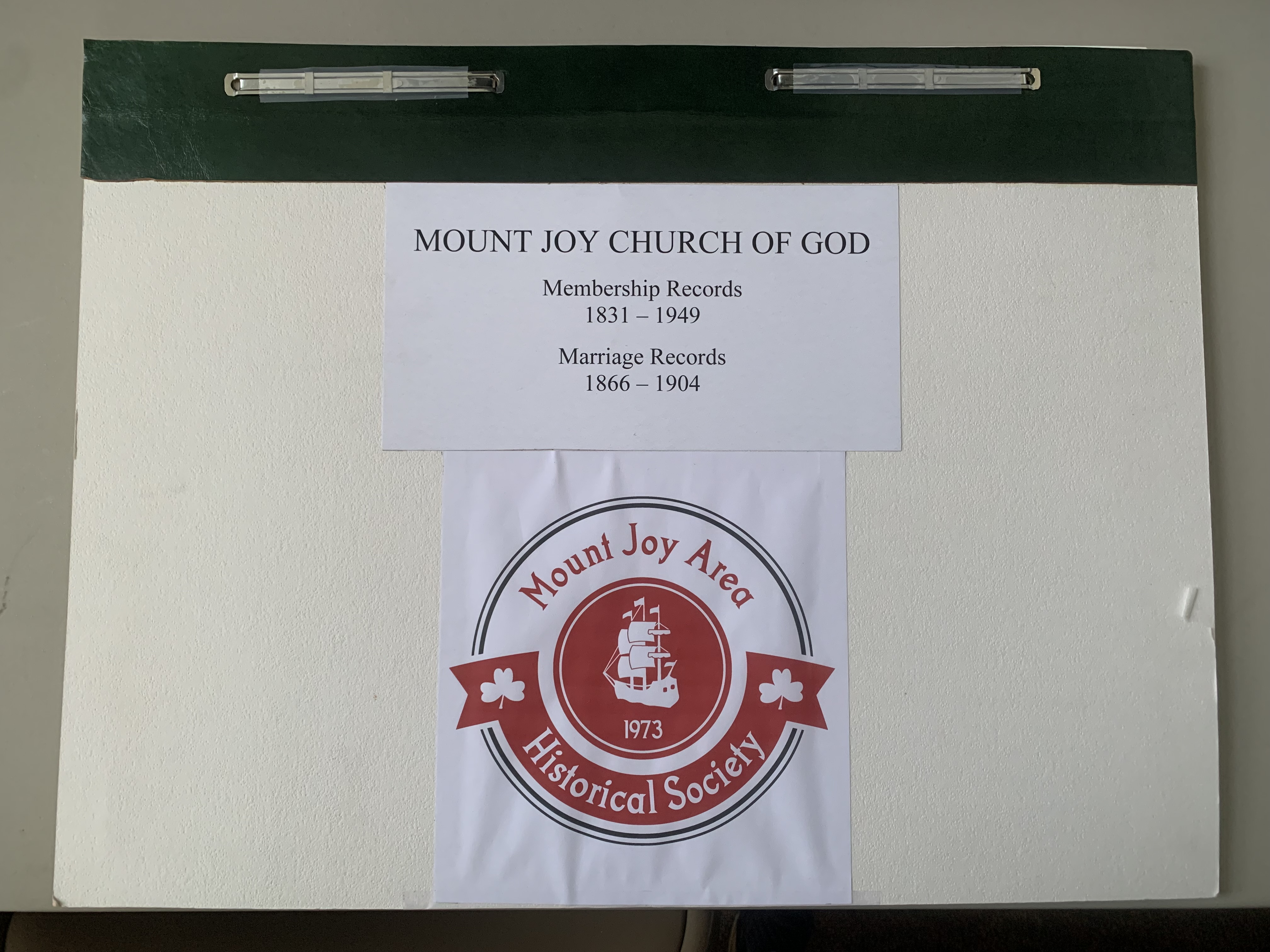 “Mount Joy Church of God Marriage Records 1866-1904,” MJAHS Online Inventory, accessed December 16, 2025, https://mountjoyhistory.com/inventory/items/show/11716.