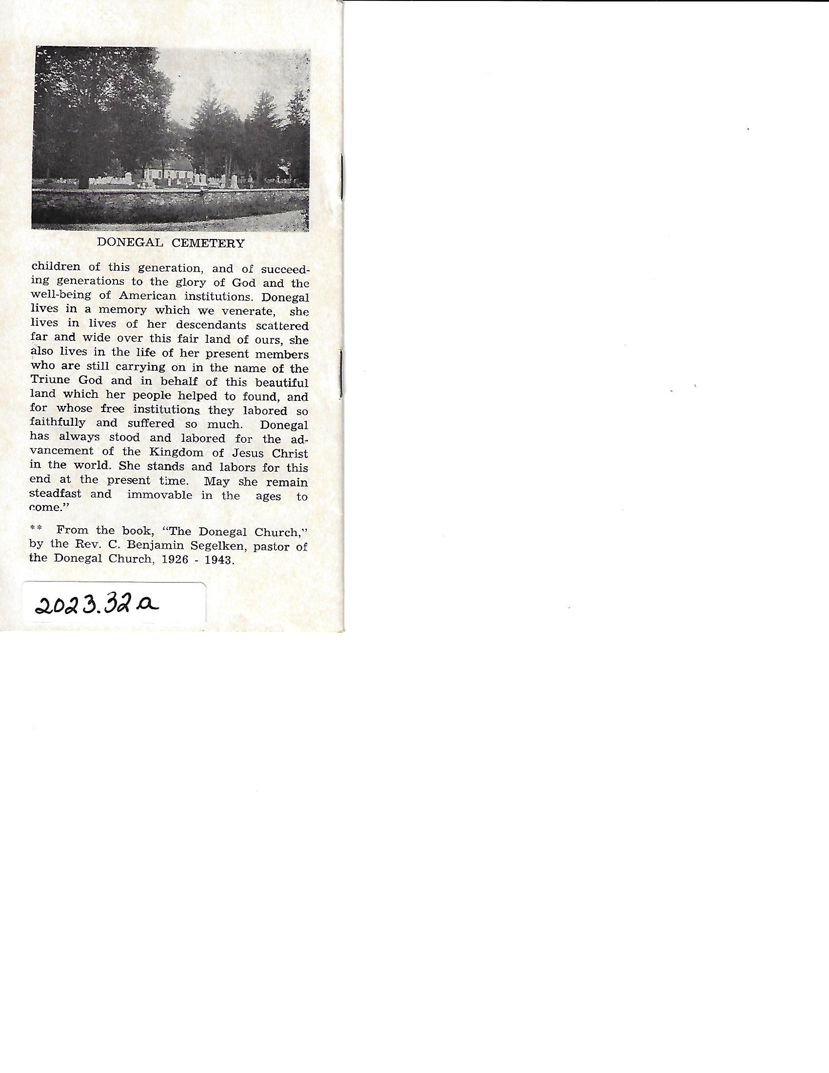 “History of Donegal Church pamphlet,” MJAHS Online Inventory, accessed December 16, 2025, https://mountjoyhistory.com/inventory/items/show/12170.