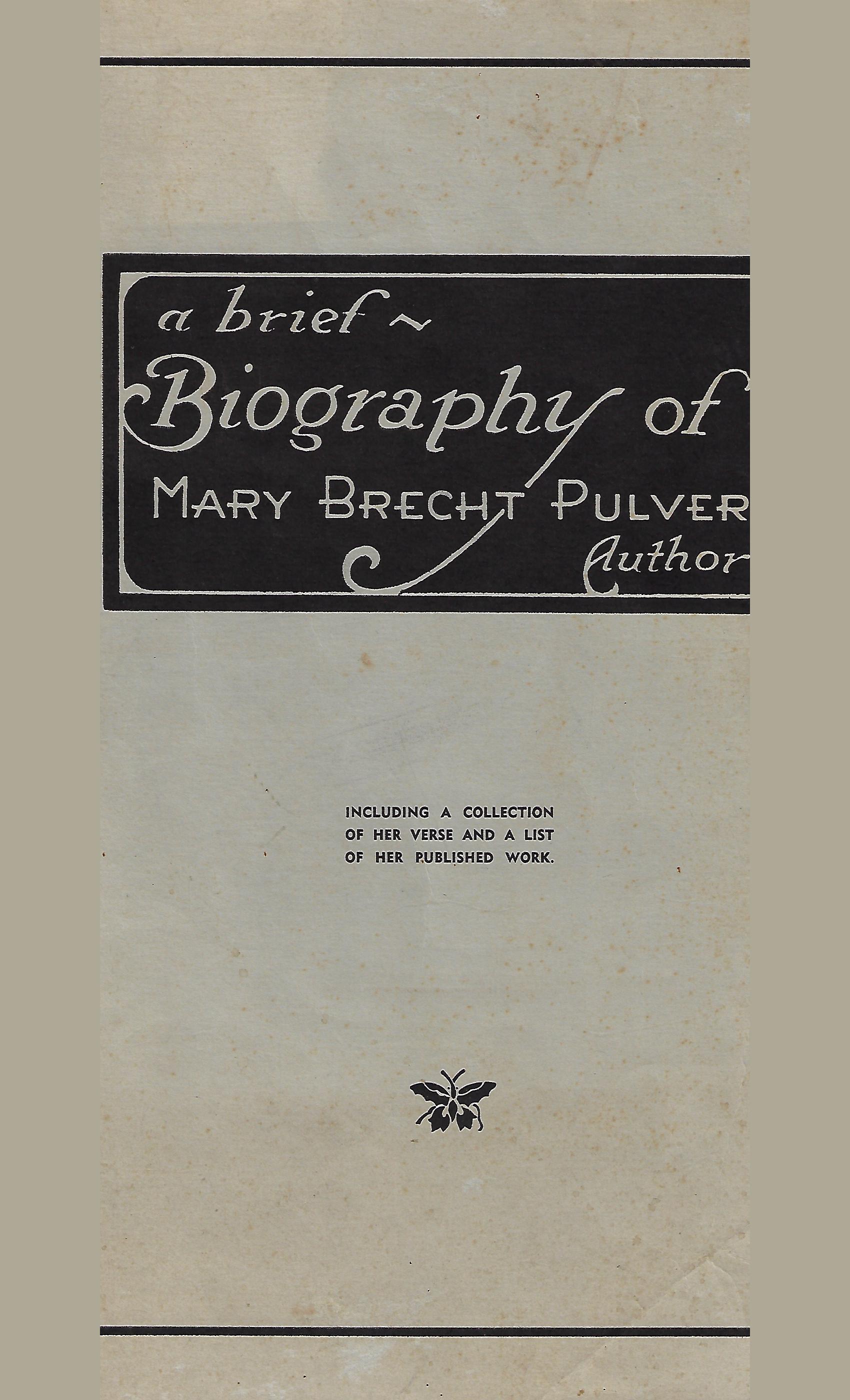 a brief biography of Mary Brecht Pulver Author, including a collection of her verse and a list of her published work