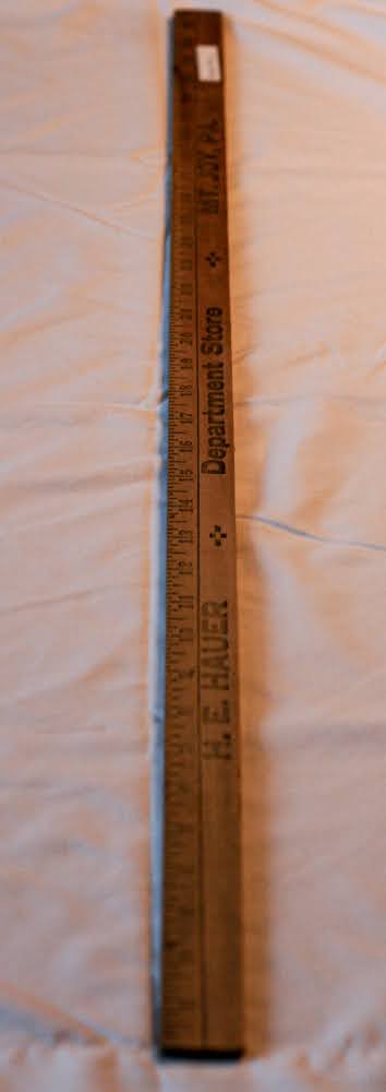 “H. E. Hauer Department Store yardstick,” MJAHS Online Inventory, accessed December 16, 2025, https://mountjoyhistory.com/inventory/items/show/12211.