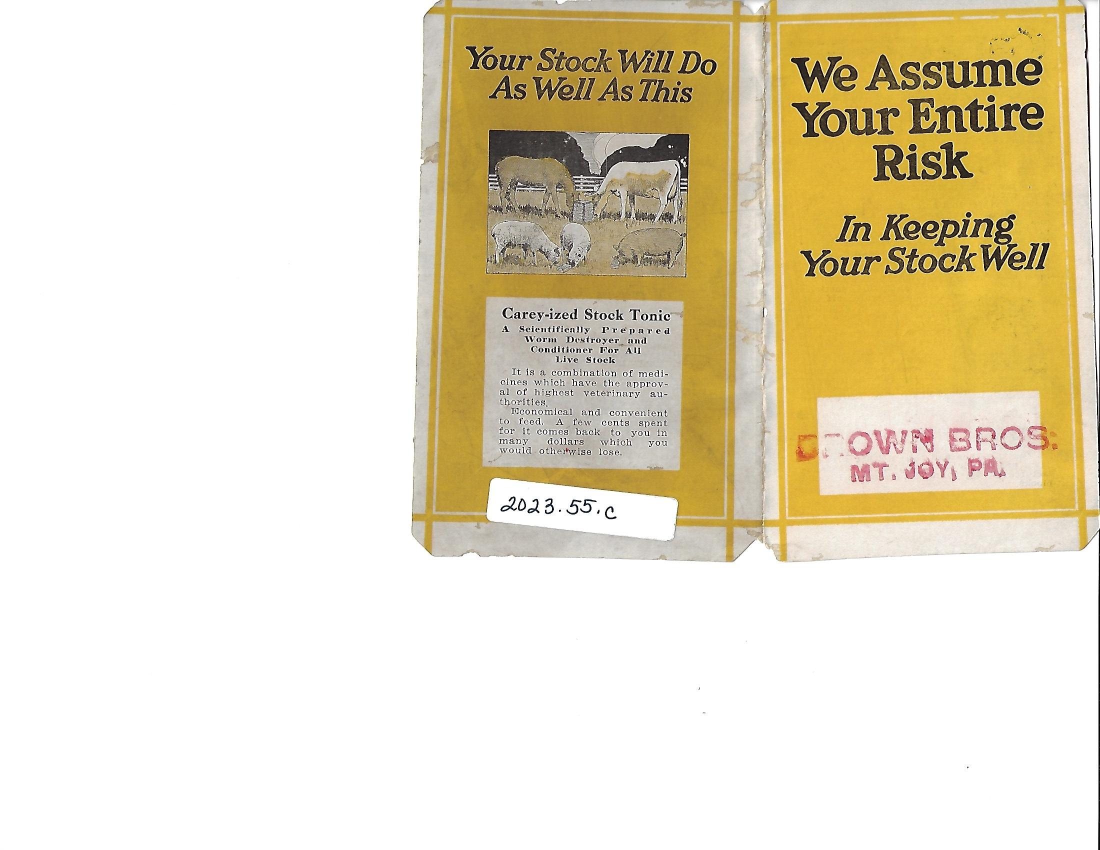 “Brown Bros. Carey-ized Stock Tonic Brick & Block ad pamphlet,” MJAHS Online Inventory, accessed December 16, 2025, https://mountjoyhistory.com/inventory/items/show/12289.