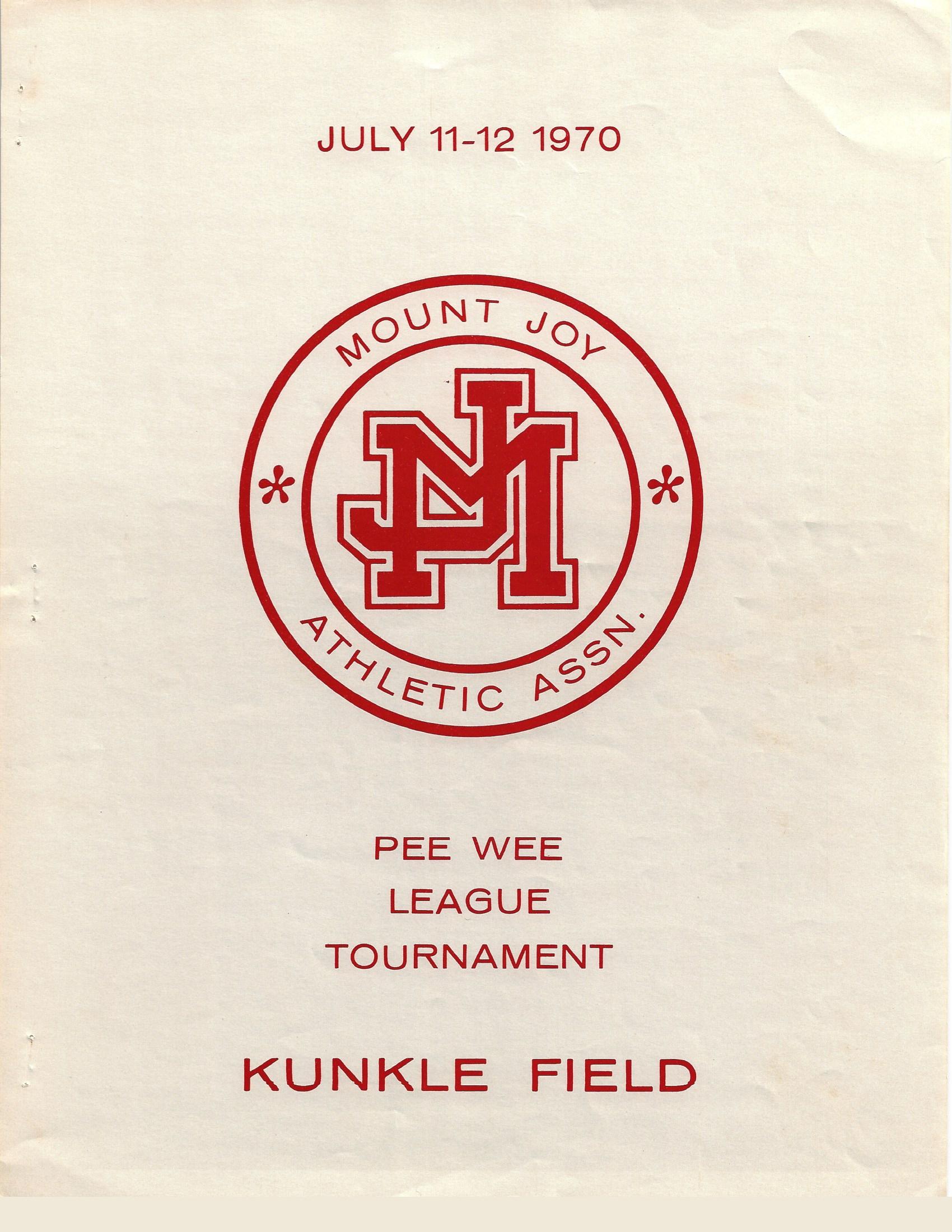 Mount Joy Athletic Association (MJAA) Pee Wee League Tournament Program, July 11 - 12, 1970, Kunkle Field, Toby Weber Chairman