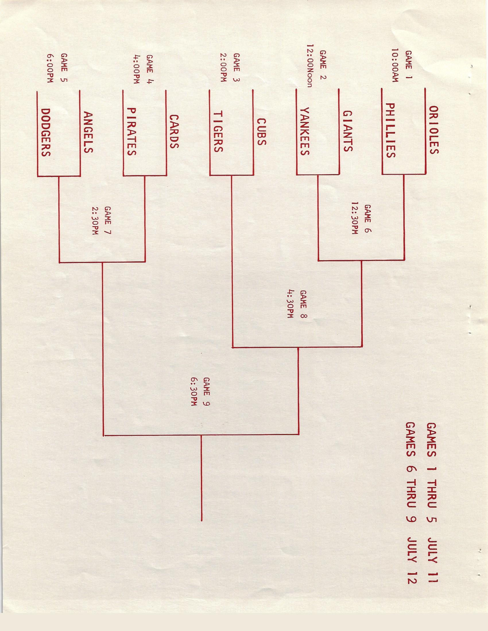 Game 4 Cards: Jay Loran (Jay Loraw), Steve Marshall, Lynn Witmer, Lee Witmer, Brian Beckeer, Gordon Hostetter, Paul Murphy, Craig Marshall, Shawn Long, Bill Bitzer, Ted McKain