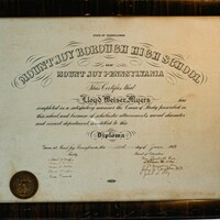 “Mount Joy Borough High School June 18, 1919 High School diploma, Lloyd Myers, framed,” MJAHS Online Inventory, accessed December 17, 2025, https://mountjoyhistory.com/inventory/items/show/12304.