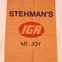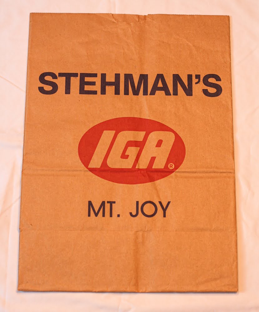 Stehman's IGA grocery bags - 3 different designs, “Stehman's IGA paper grocery bag,” MJAHS Online Inventory, accessed December 18, 2025, https://mountjoyhistory.com/inventory/items/show/12305.
