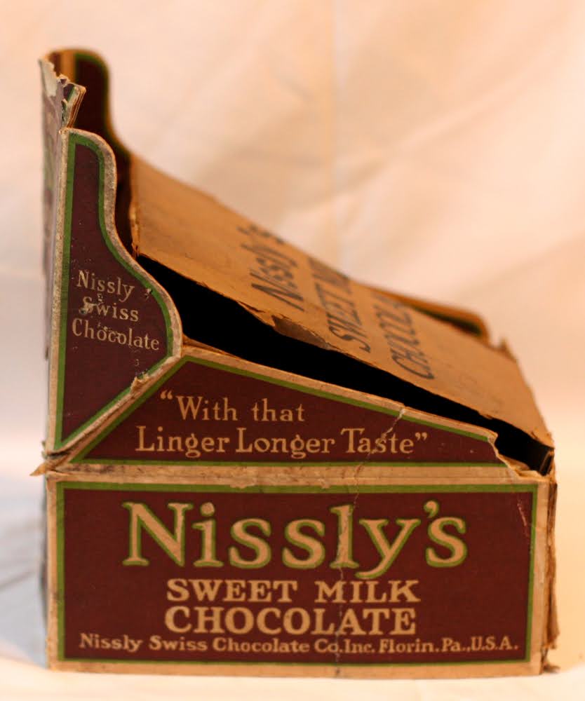 “Nissley's Sweet Milk Chocolate display box,” MJAHS Online Inventory, accessed December 19, 2025, https://mountjoyhistory.com/inventory/items/show/12392.