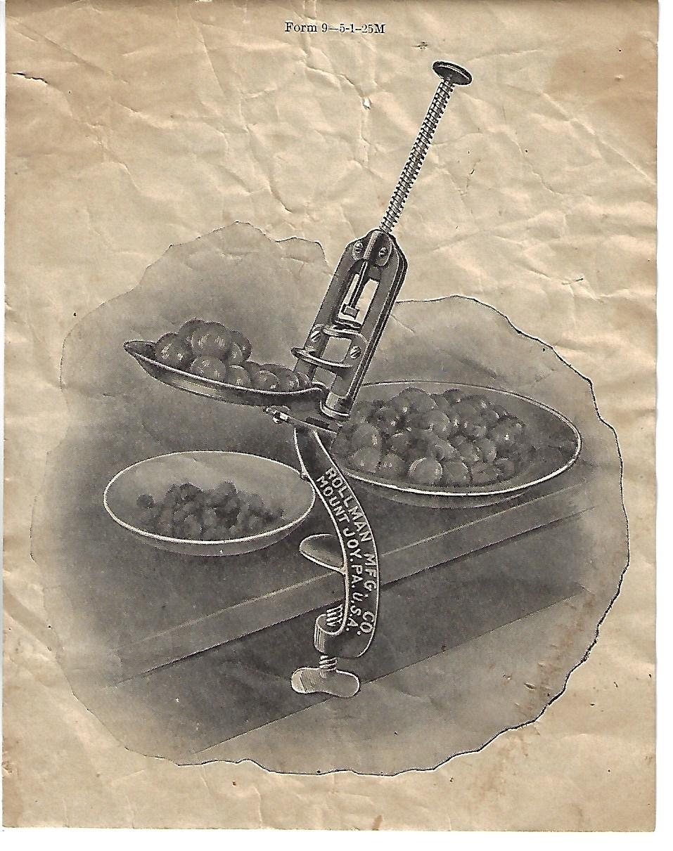“Rollman Cherry Seeder Directions,” MJAHS Online Inventory, accessed December 18, 2025, https://mountjoyhistory.com/inventory/items/show/12414.