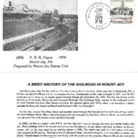 PRR Depot, Mount Joy Stamp Club, locomotive, Honesdale, 1834, 1836, Exchange Hotel, Brandt and Stehman's Mill, Spangler's, 1852, 1896, 1976