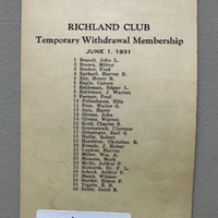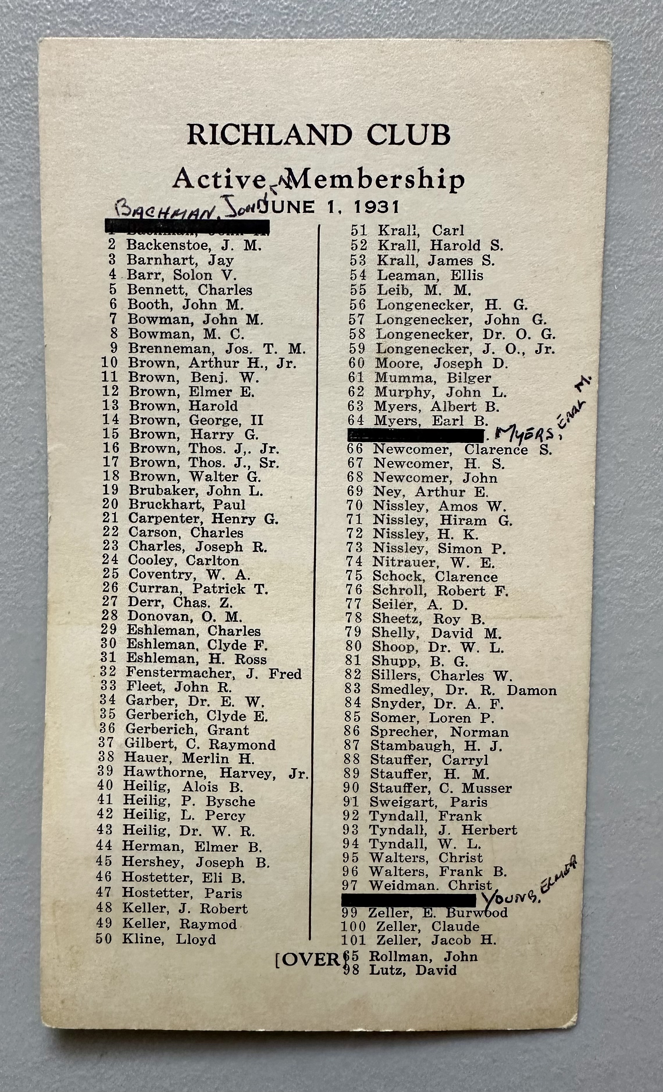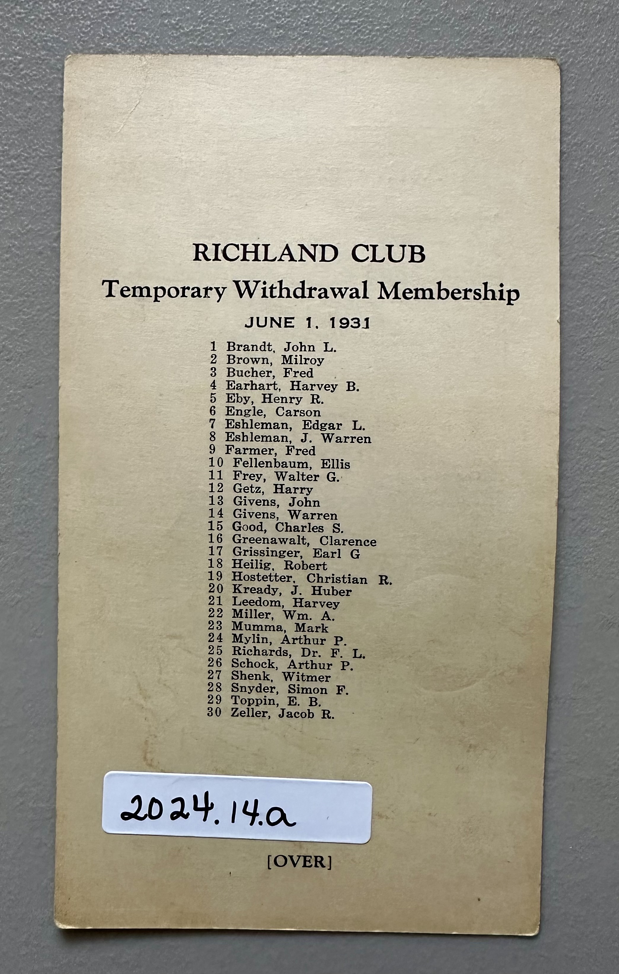 “Richland Club membership card, 1931,” MJAHS Online Inventory, accessed December 18, 2025, https://mountjoyhistory.com/inventory/items/show/12519.