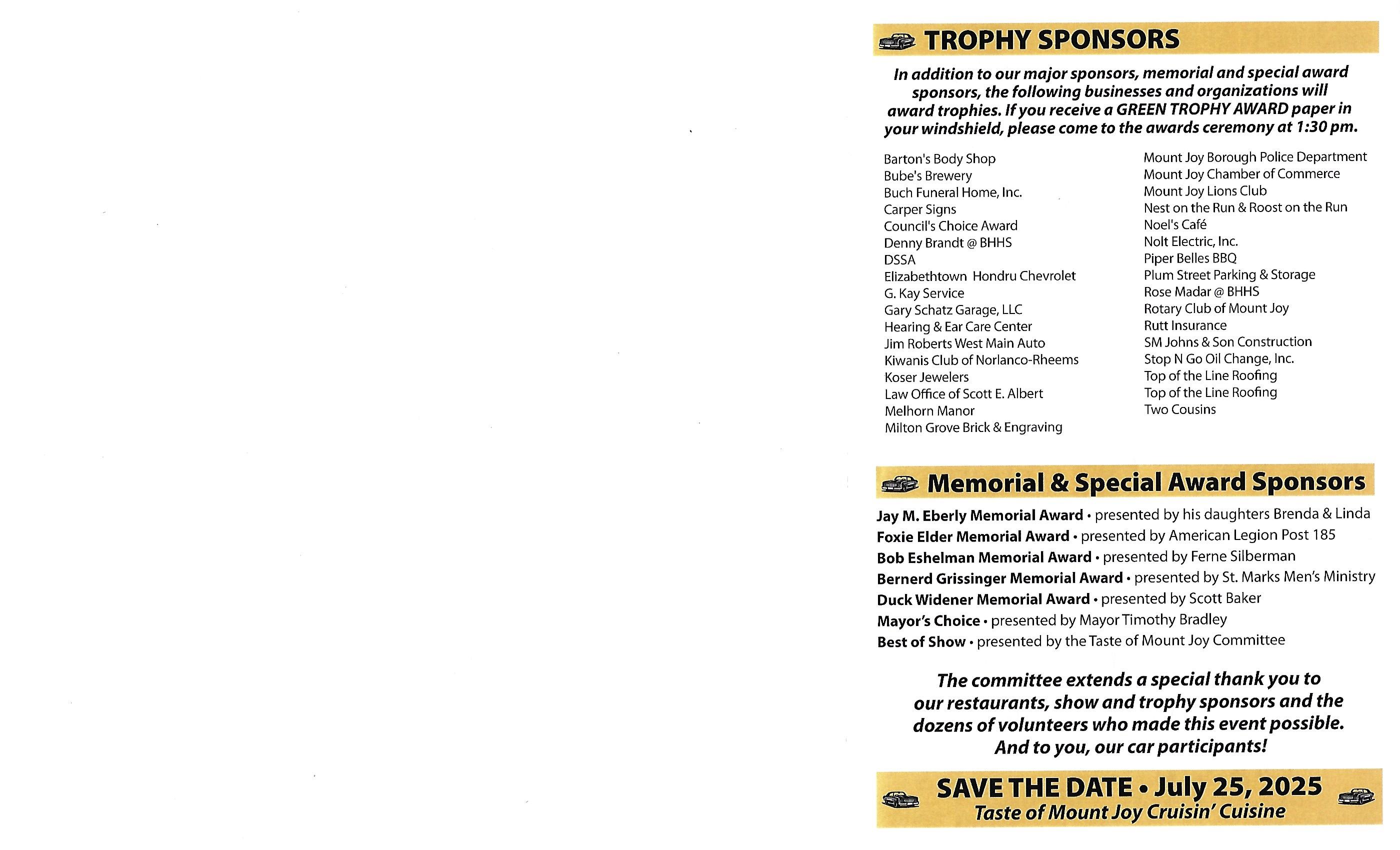Taste of Mount Joy Cruisin' Cuisine program, July 27, 2024