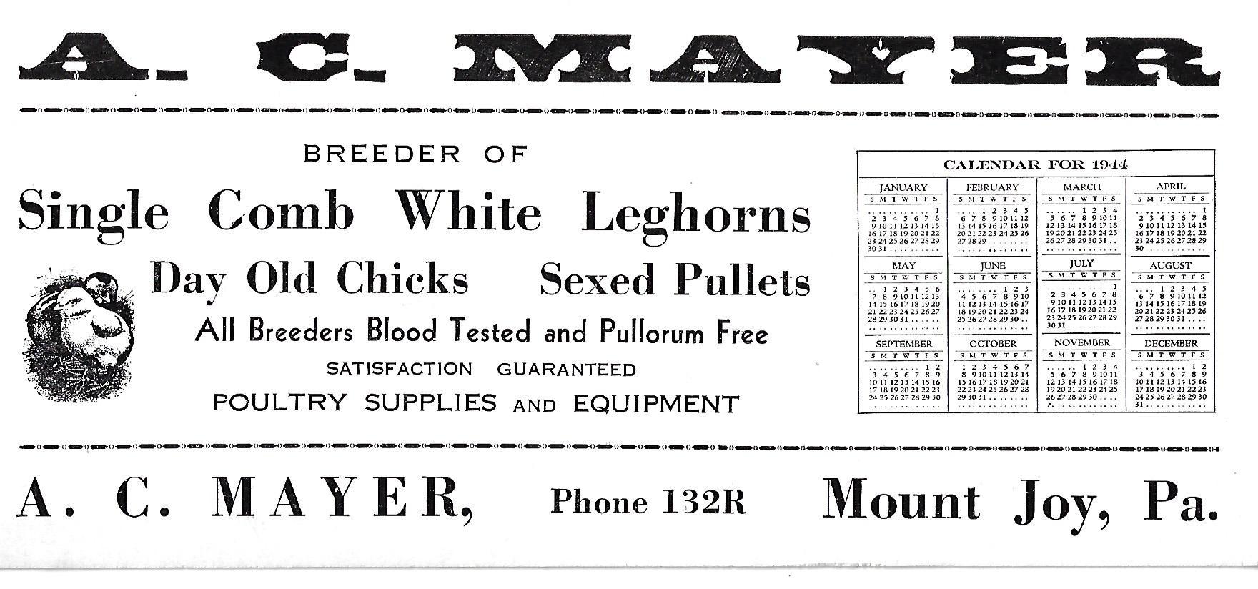 “A. C. Mayer advertisement - long white postcard,” MJAHS Online Inventory, accessed December 21, 2025, https://mountjoyhistory.com/inventory/items/show/12575.