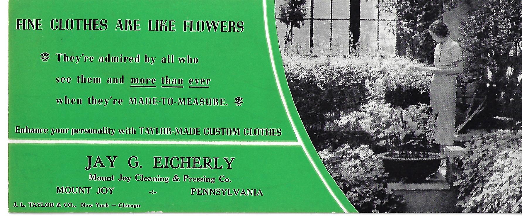 “Jay G. Eicherly advertisement postcard,” MJAHS Online Inventory, accessed December 21, 2025, https://mountjoyhistory.com/inventory/items/show/12576.