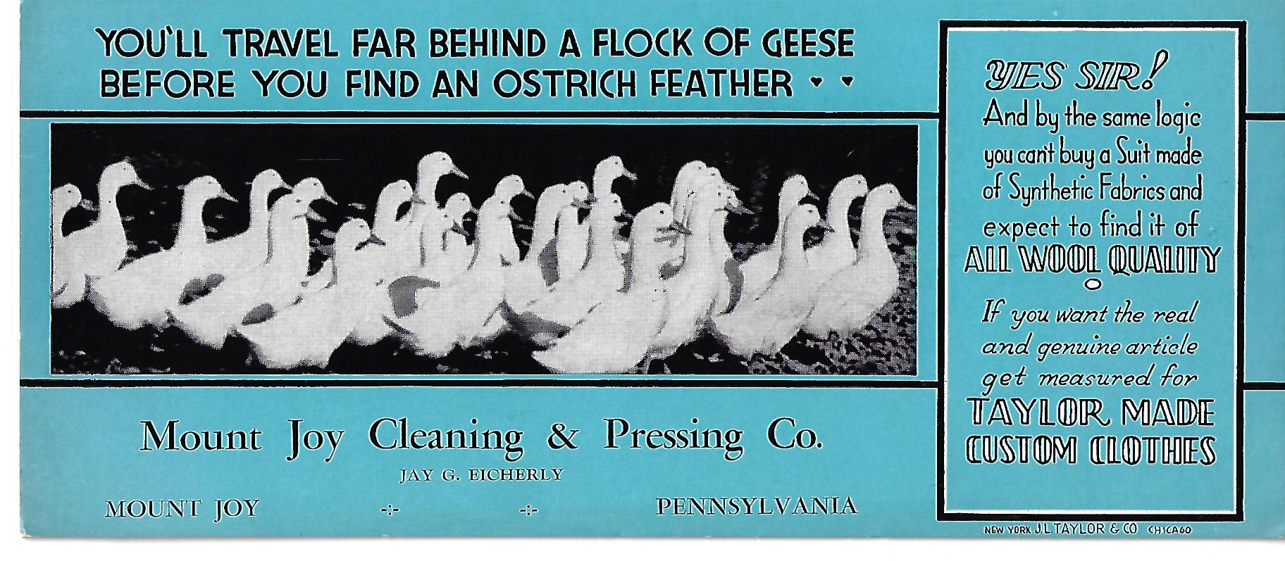 “Mount Joy Cleaning & Pressing Company long postcard,” MJAHS Online Inventory, accessed December 21, 2025, https://mountjoyhistory.com/inventory/items/show/12577.