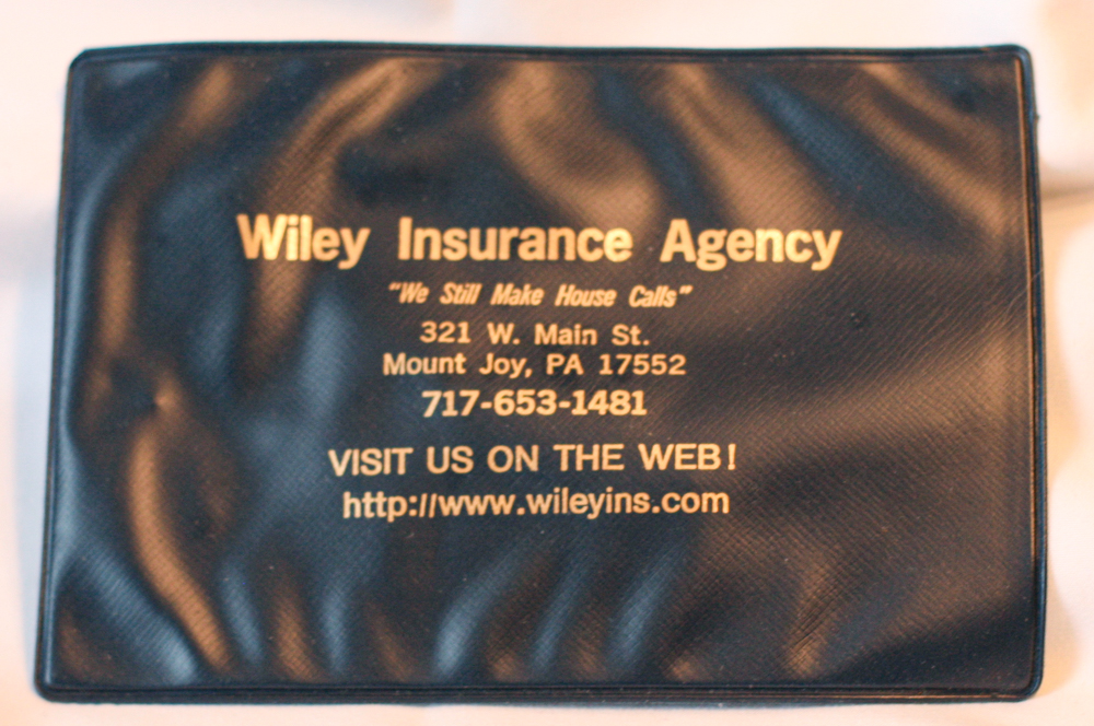 “Wiley Insurance Agency plastic document holder,” MJAHS Online Inventory, accessed December 21, 2025, https://mountjoyhistory.com/inventory/items/show/12579.