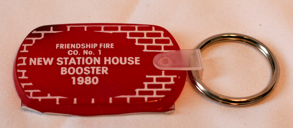 Friendship Fire Co. #1 new station house booster key chain, 1980