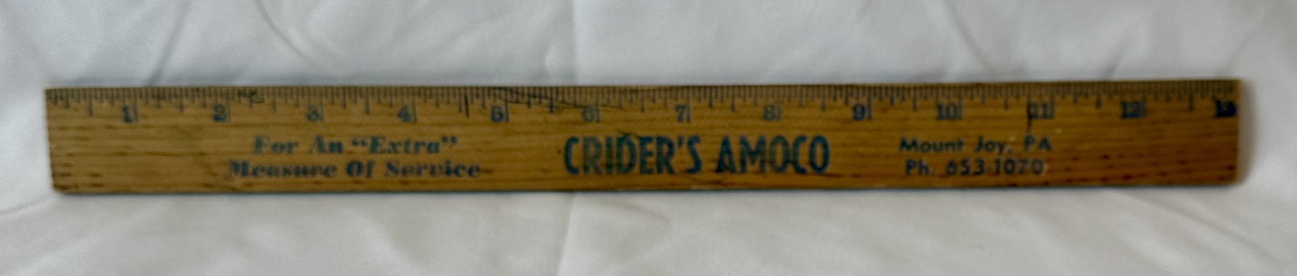 “Crider's Amoco 13" ruler,” MJAHS Online Inventory, accessed December 21, 2025, https://mountjoyhistory.com/inventory/items/show/12674.