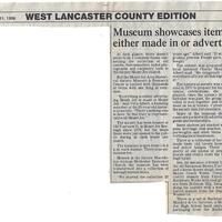 Museum (Historical Society) showcases items made in and advertise Mount Joy, news article (copy), November 11, 1998