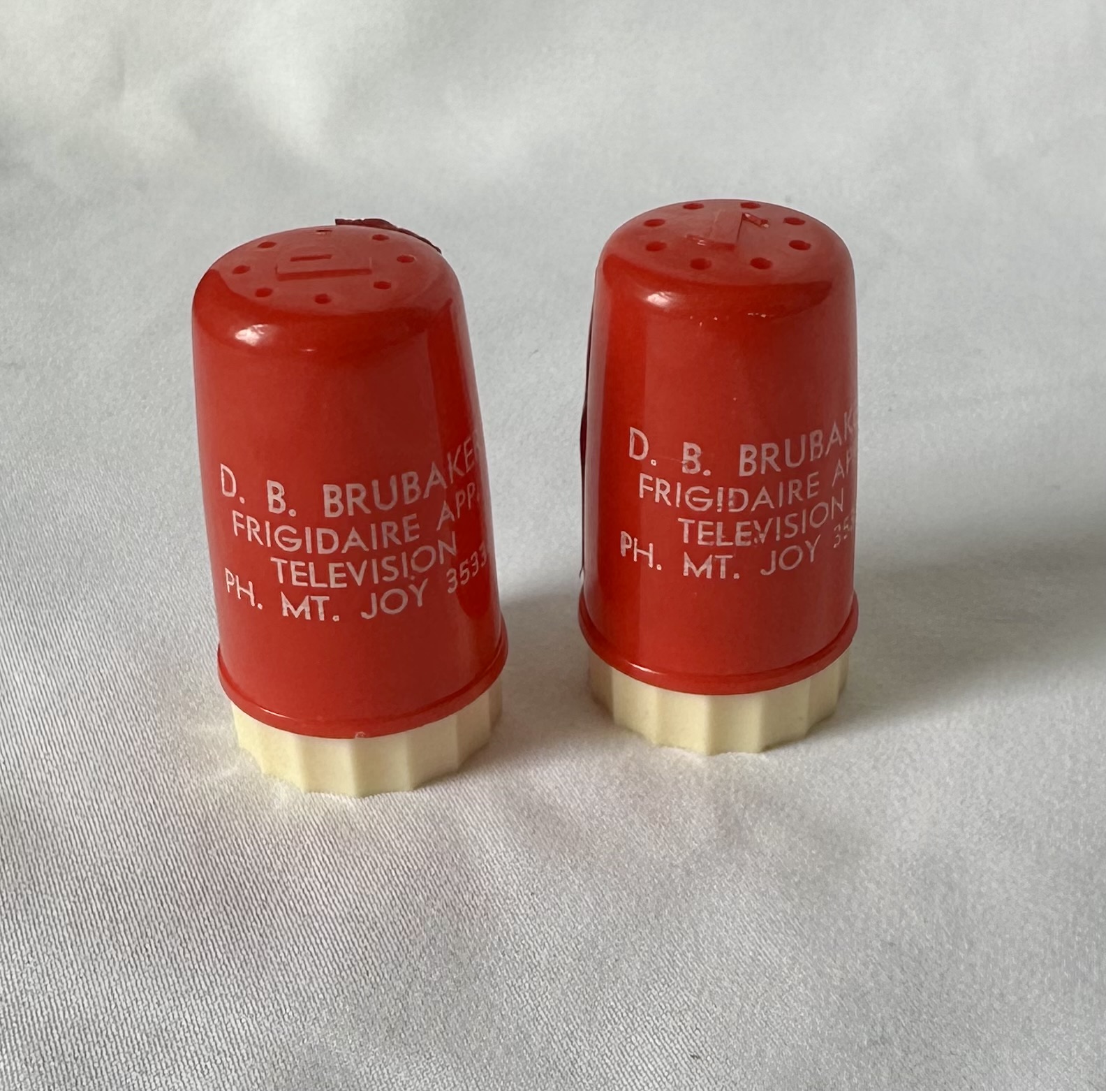 “D. B. Brubaker Frigidaire Appliance salt & pepper shakers,” MJAHS Online Inventory, accessed January 14, 2026, https://mountjoyhistory.com/inventory/items/show/12690.
