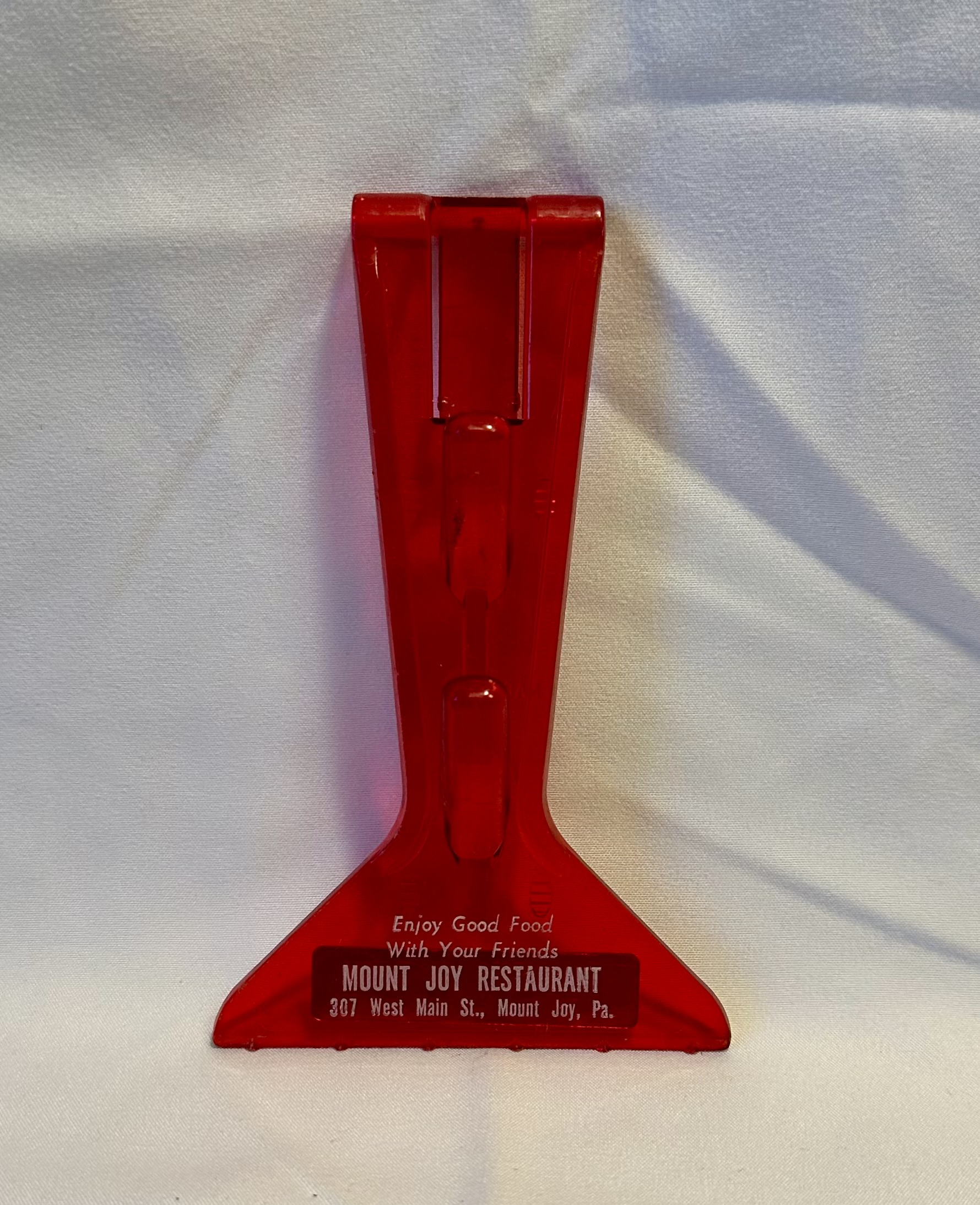 “Mount Joy Restaurant ice scraper, red,” MJAHS Online Inventory, accessed December 21, 2025, https://mountjoyhistory.com/inventory/items/show/12726.
