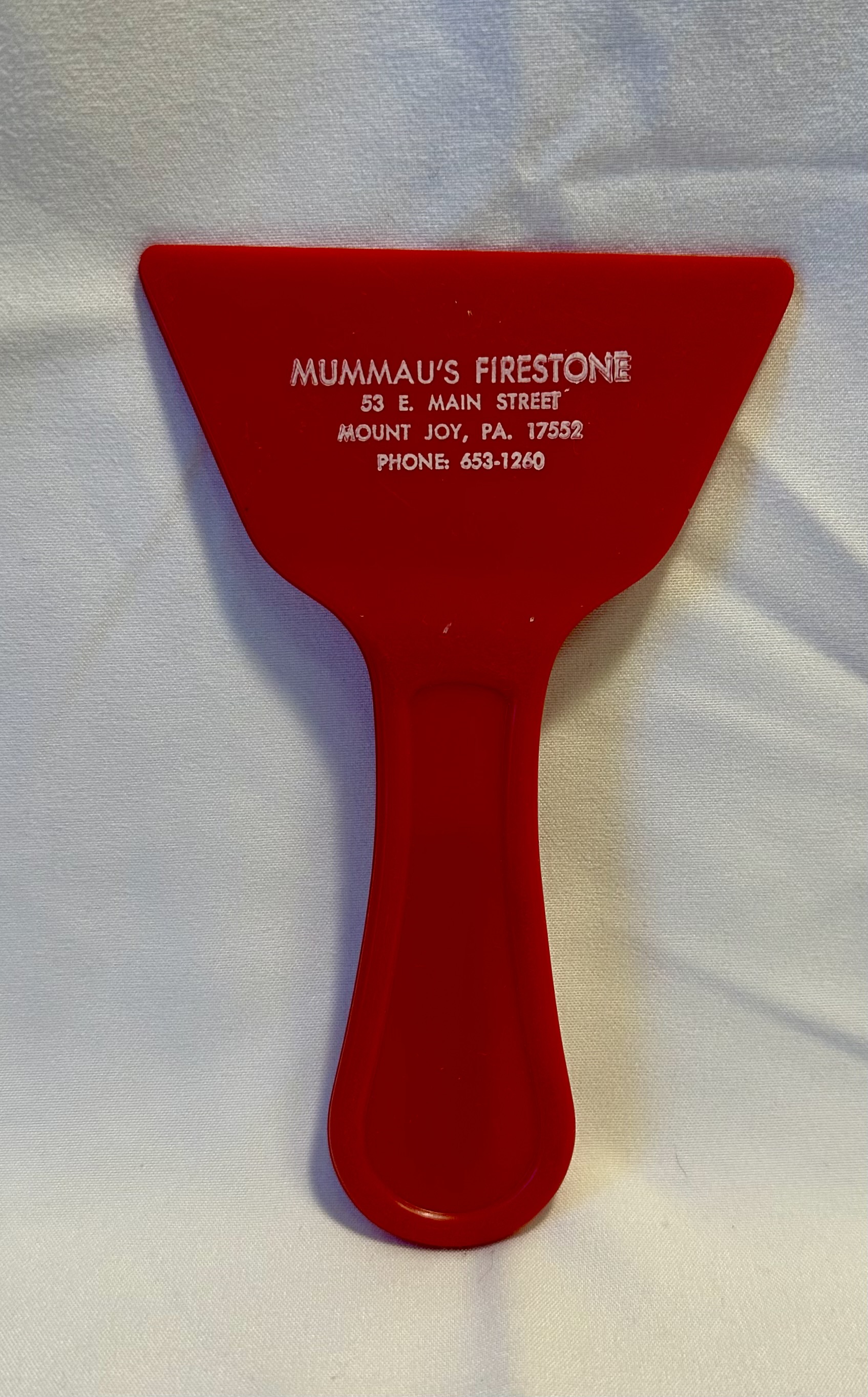 “Mummau's Firestone ice scraper, red,” MJAHS Online Inventory, accessed December 21, 2025, https://mountjoyhistory.com/inventory/items/show/12727.