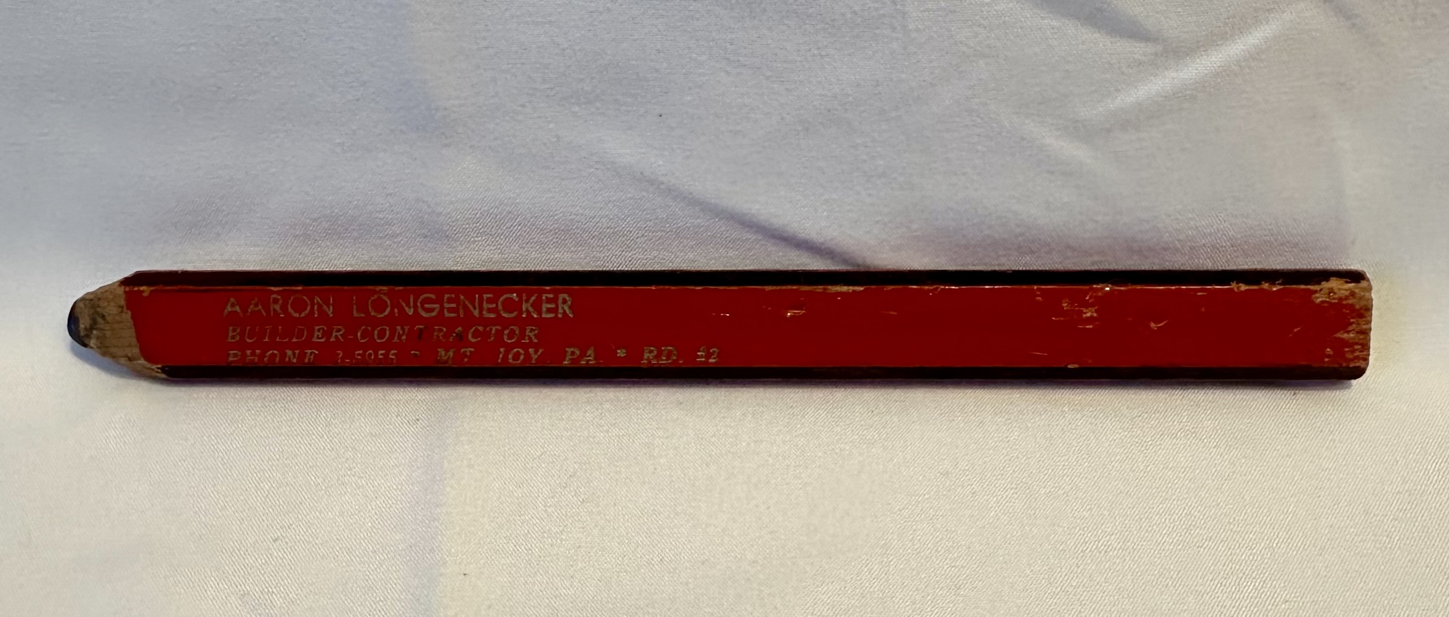 “Aaron Longenecker Builder Contractor flat pencil,” MJAHS Online Inventory, accessed December 21, 2025, https://mountjoyhistory.com/inventory/items/show/12729.