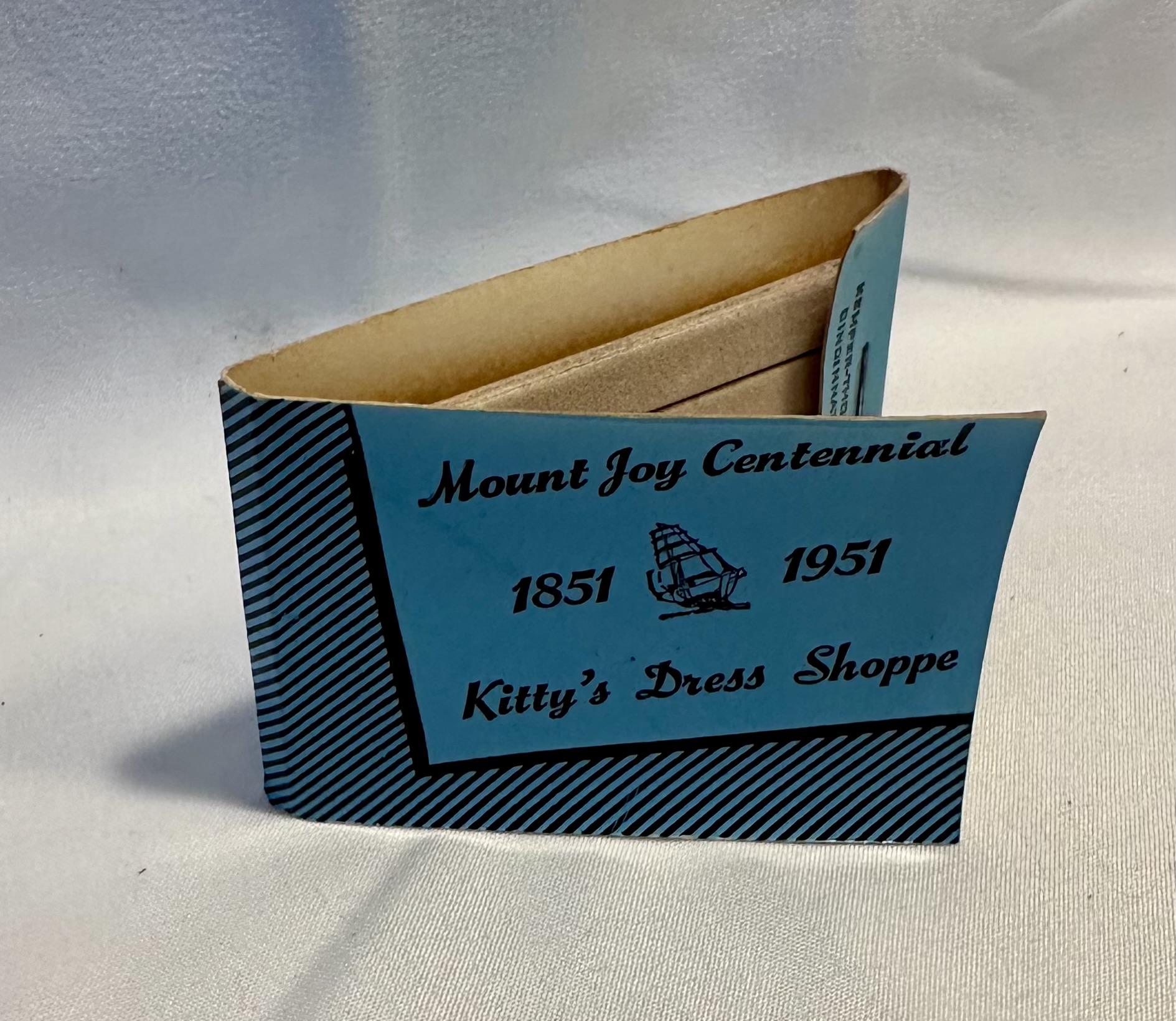 Kitty's Dress Shoppe, matchbook, Mount Joy Centennial, 1851, 1951