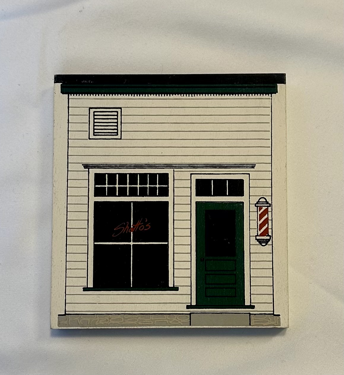 Shatto's Barber Shop, Cat's Meow wood block, built in 1920s, demolished in 1980, 1992
