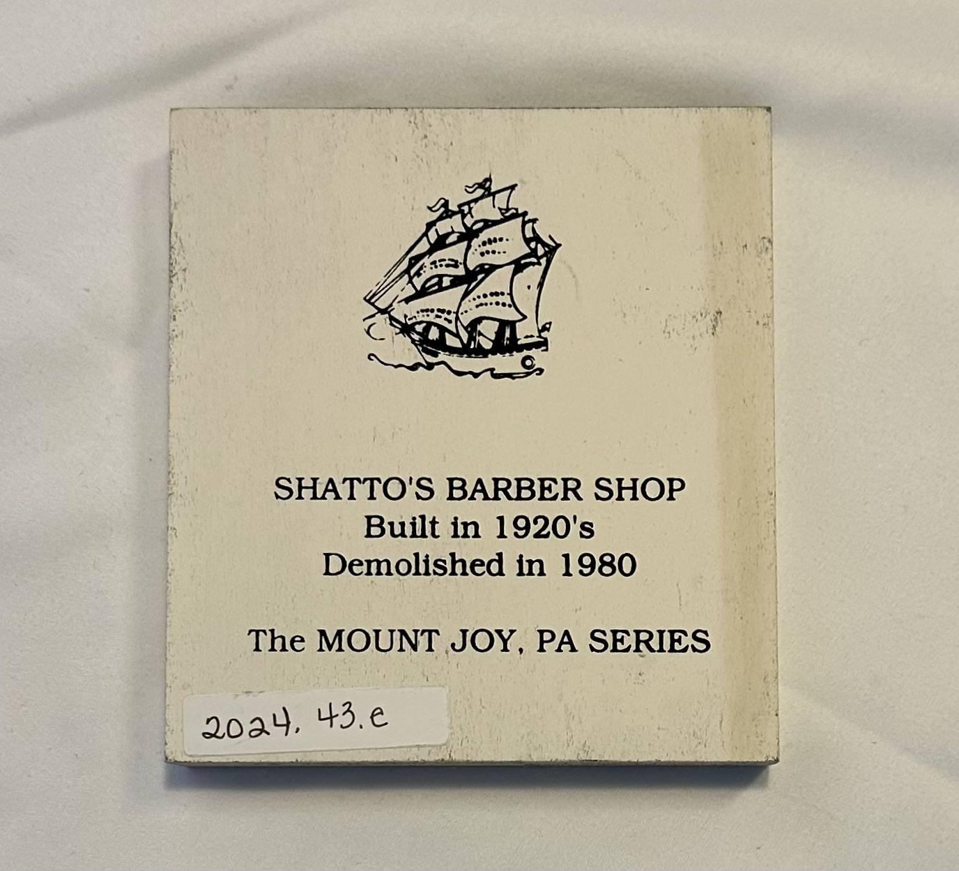 “Shatto's Barber Shop Cat's Meow wood block,” MJAHS Online Inventory, accessed December 21, 2025, https://mountjoyhistory.com/inventory/items/show/12764.