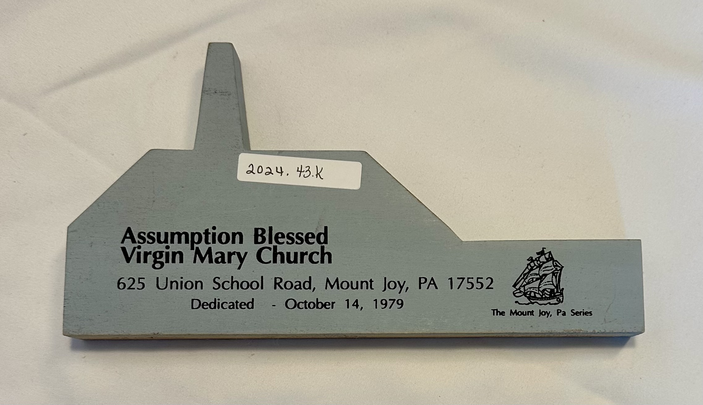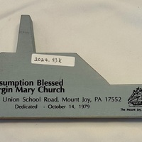 “Assumption Blessed Virgin Mary Church, Union School Road, Cat's Meow wood block,” MJAHS Online Inventory, accessed December 18, 2025, https://mountjoyhistory.com/inventory/items/show/12770.