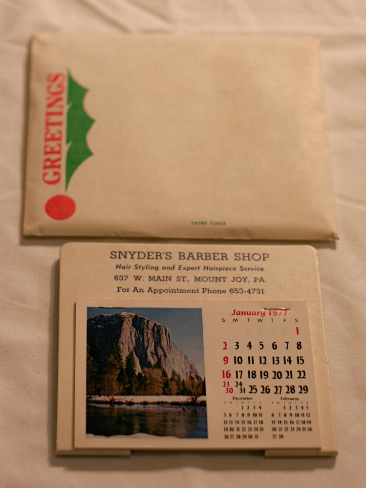 “1977 Snyder's Barbershop Calendar,” MJAHS Online Inventory, accessed December 19, 2025, https://mountjoyhistory.com/inventory/items/show/12806.