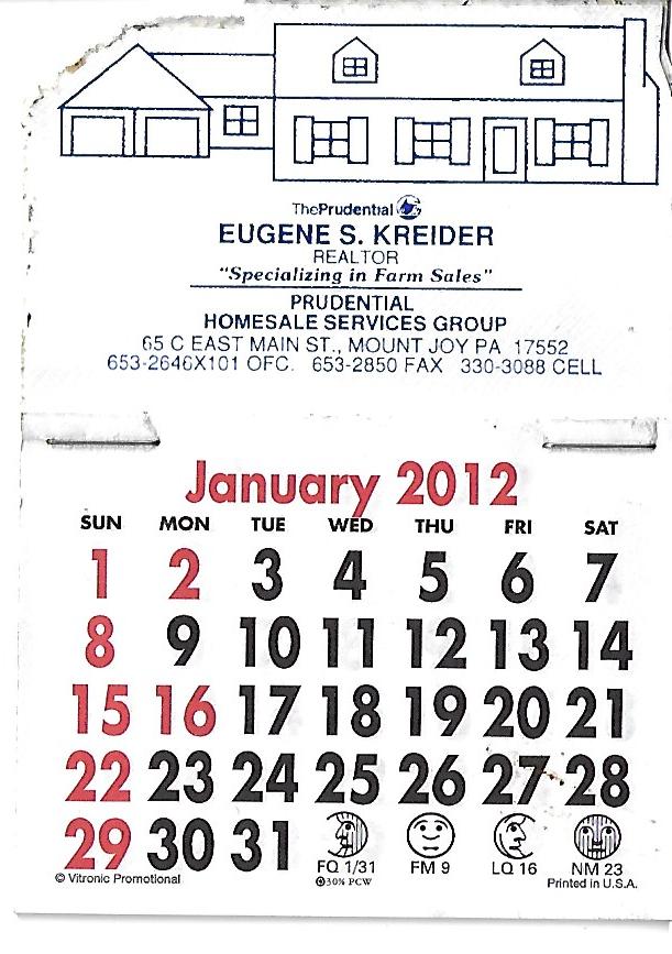 “2012 Eugene S. Kreider Calendar,” MJAHS Online Inventory, accessed December 19, 2025, https://mountjoyhistory.com/inventory/items/show/12807.