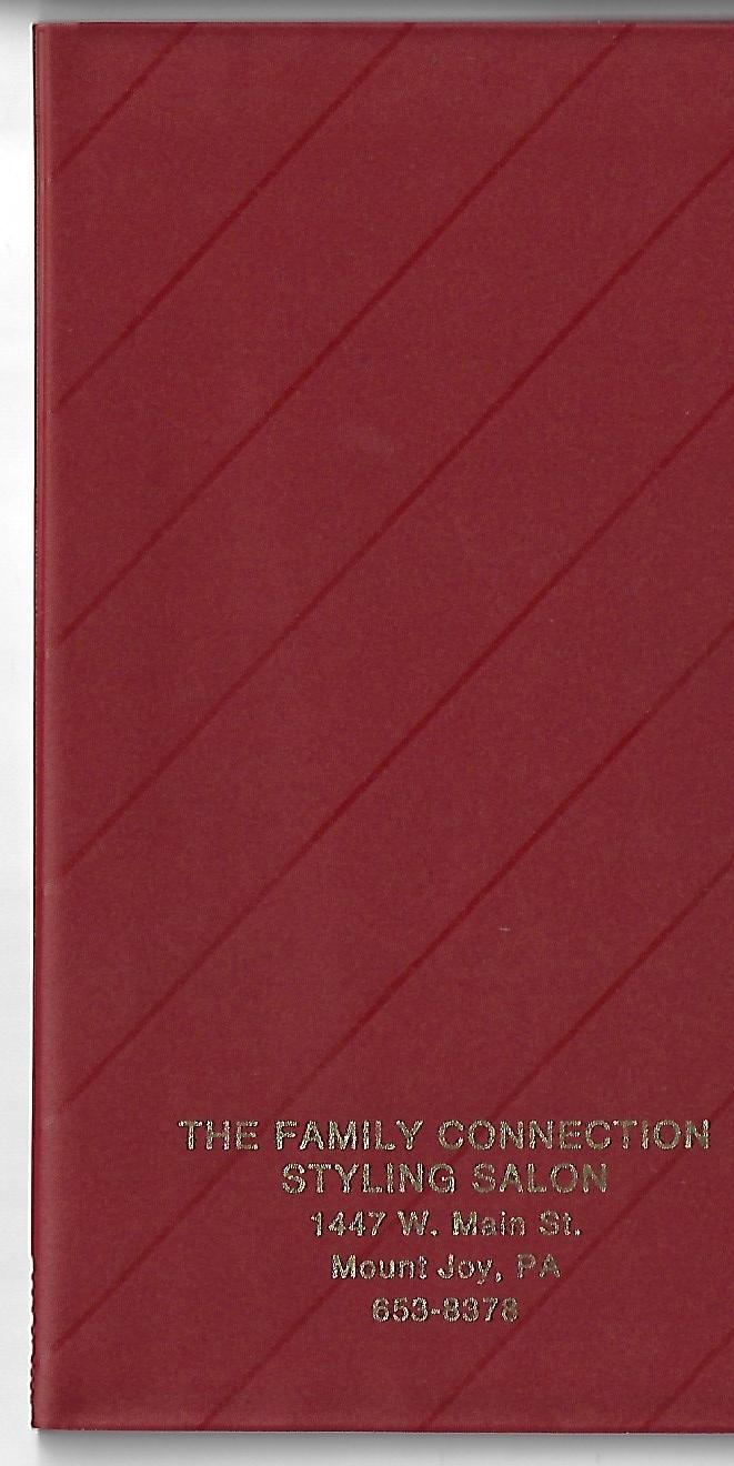 “1992 Family Connection Styling Salon Pocket Calendar,” MJAHS Online Inventory, accessed December 19, 2025, https://mountjoyhistory.com/inventory/items/show/12809.