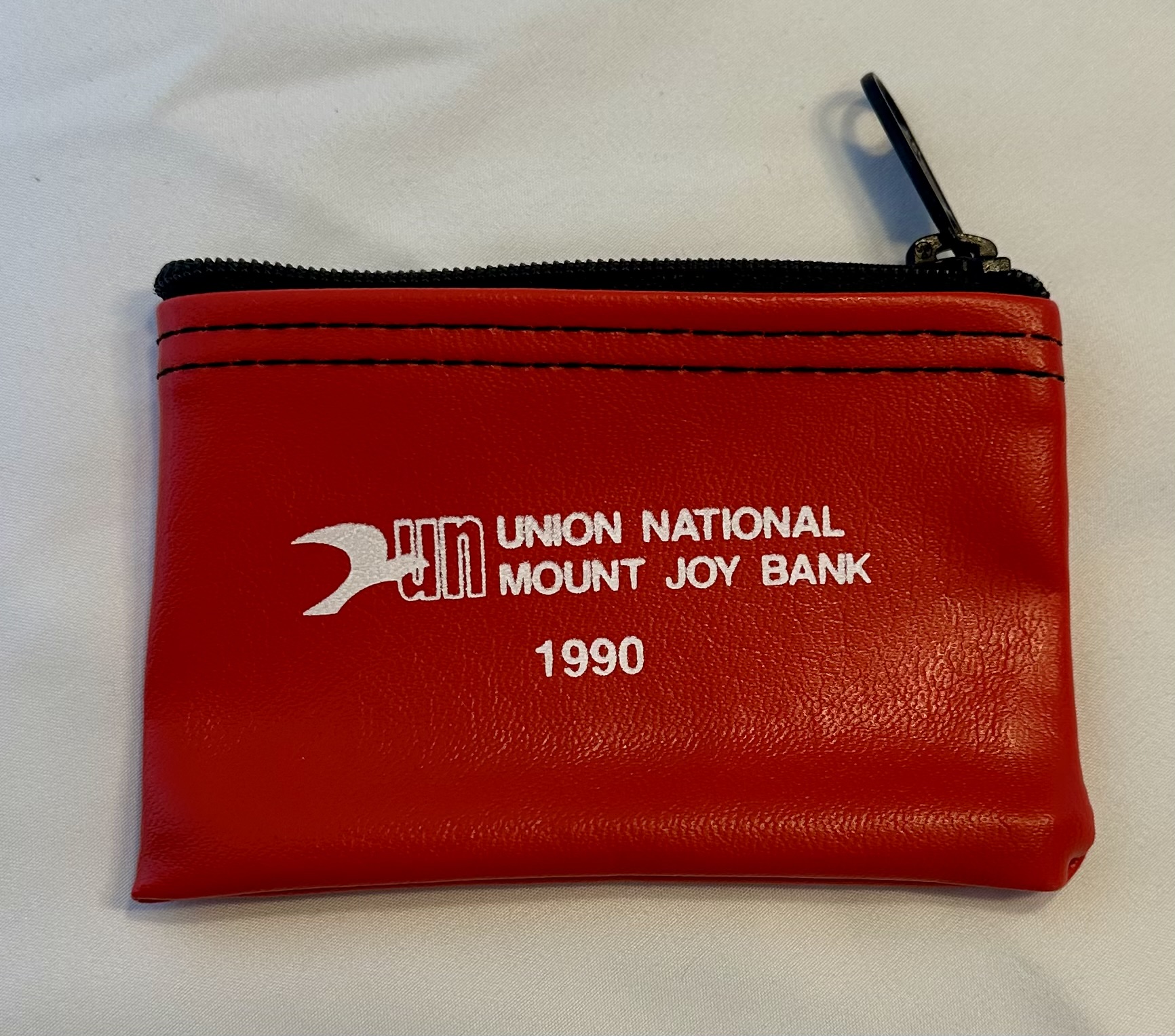 “Union National Mount Joy Bank red zip coin purse, 1990,” MJAHS Online Inventory, accessed December 20, 2025, https://mountjoyhistory.com/inventory/items/show/12839.