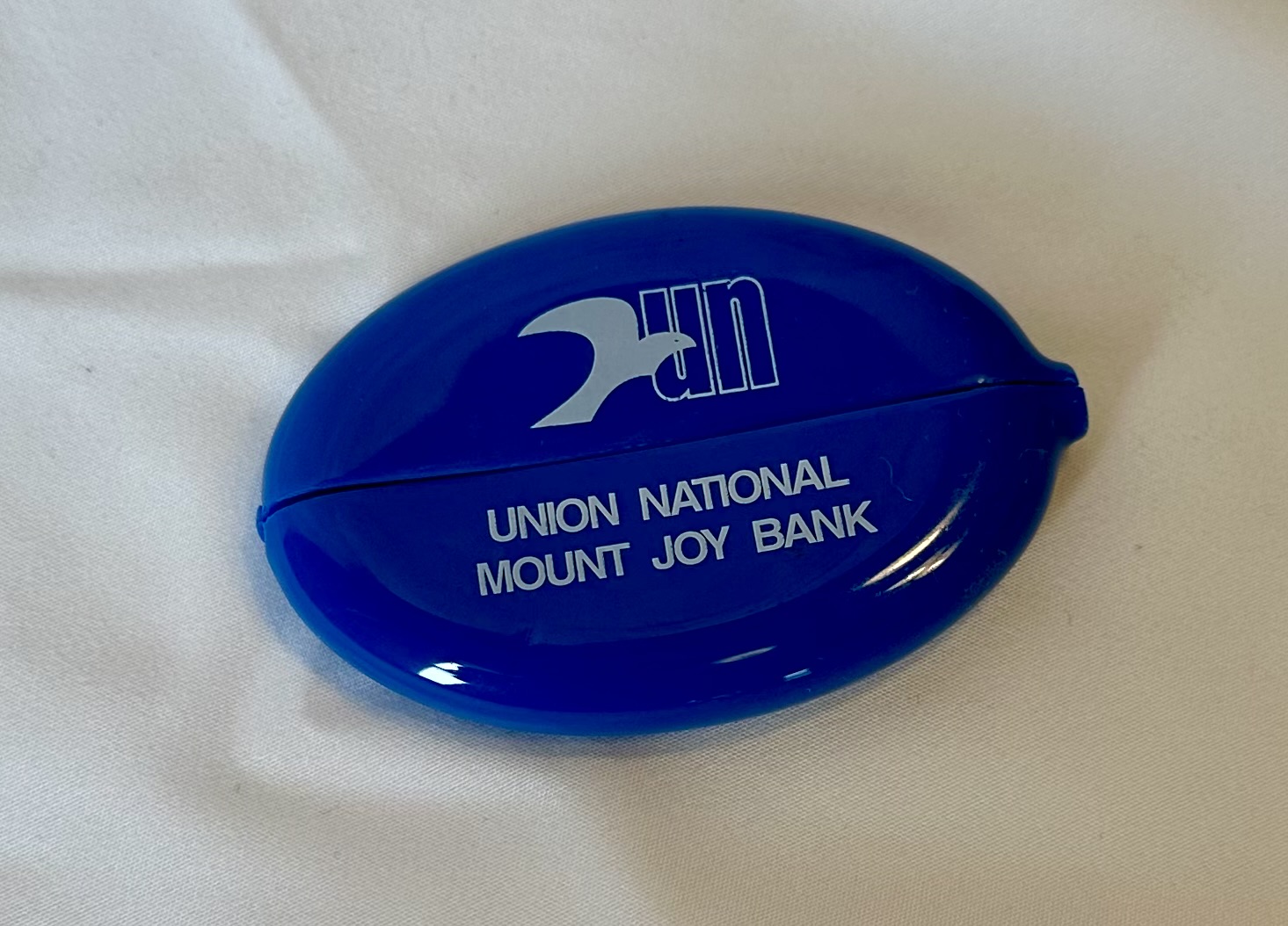 “Union National Mount Joy Bank squeeze coin purse, 1995,” MJAHS Online Inventory, accessed December 20, 2025, https://mountjoyhistory.com/inventory/items/show/12840.