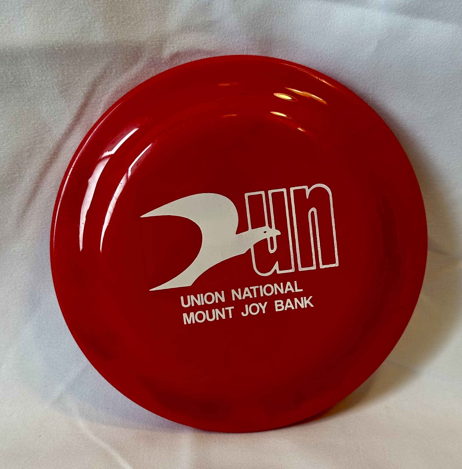 Humphrey Flyer, “Union National Mount Joy Bank red small frisbee,” MJAHS Online Inventory, accessed December 19, 2025, https://mountjoyhistory.com/inventory/items/show/12842.