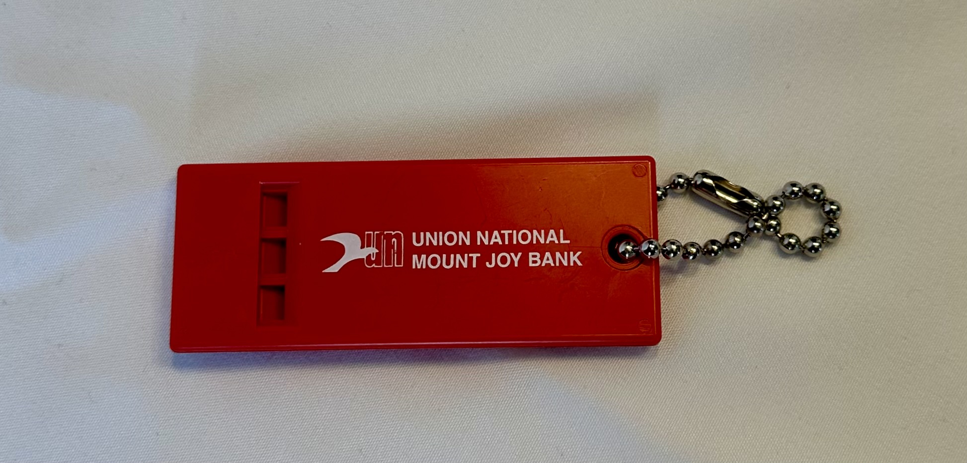“Union National Mount Joy Bank red kazoo key chain,” MJAHS Online Inventory, accessed December 20, 2025, https://mountjoyhistory.com/inventory/items/show/12846.