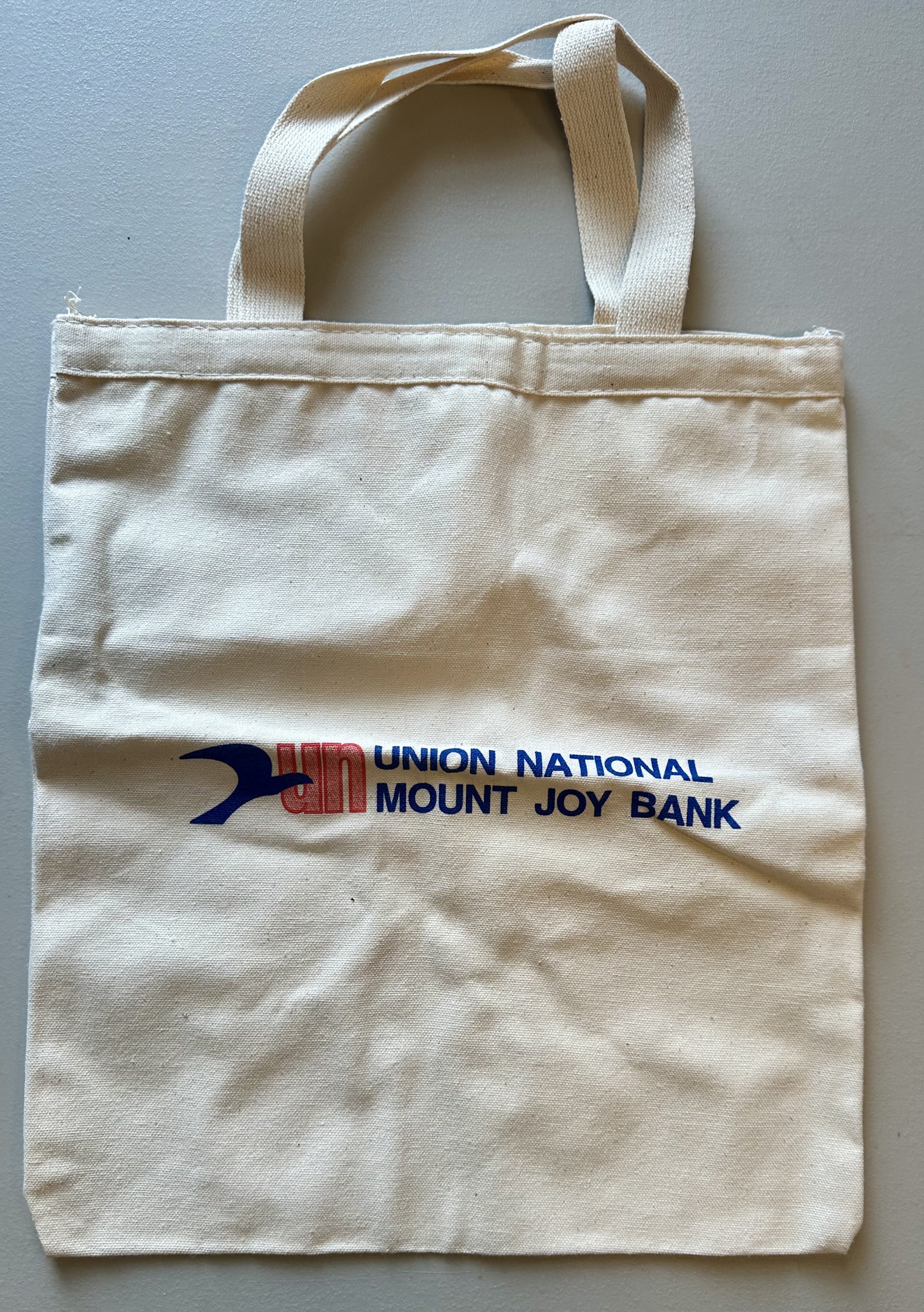 “Union National Mount Joy Bank tote bag,” MJAHS Online Inventory, accessed December 20, 2025, https://mountjoyhistory.com/inventory/items/show/12847.