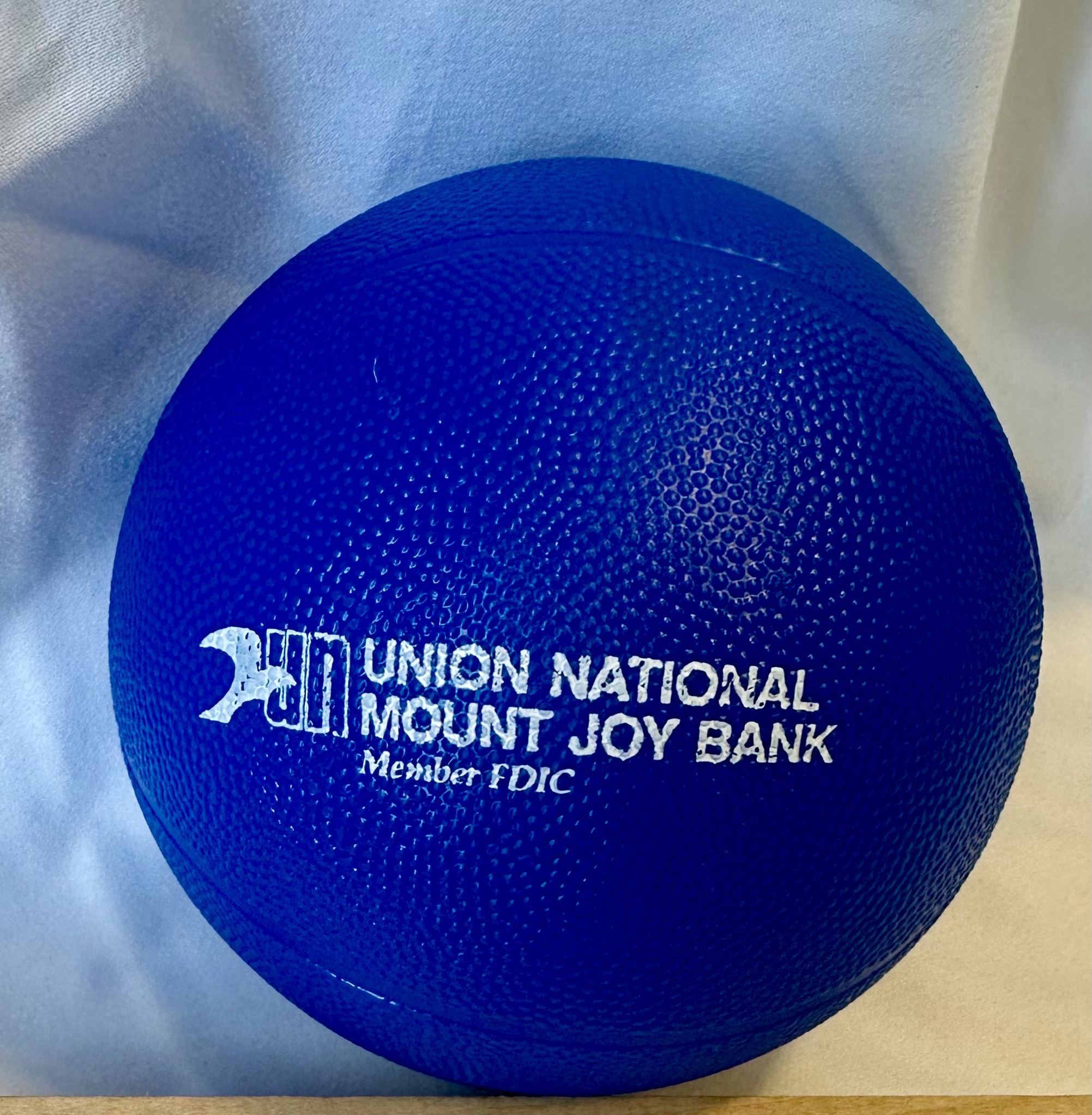 “Union National Mount Joy Bank blue rubber ball,” MJAHS Online Inventory, accessed December 20, 2025, https://mountjoyhistory.com/inventory/items/show/12848.