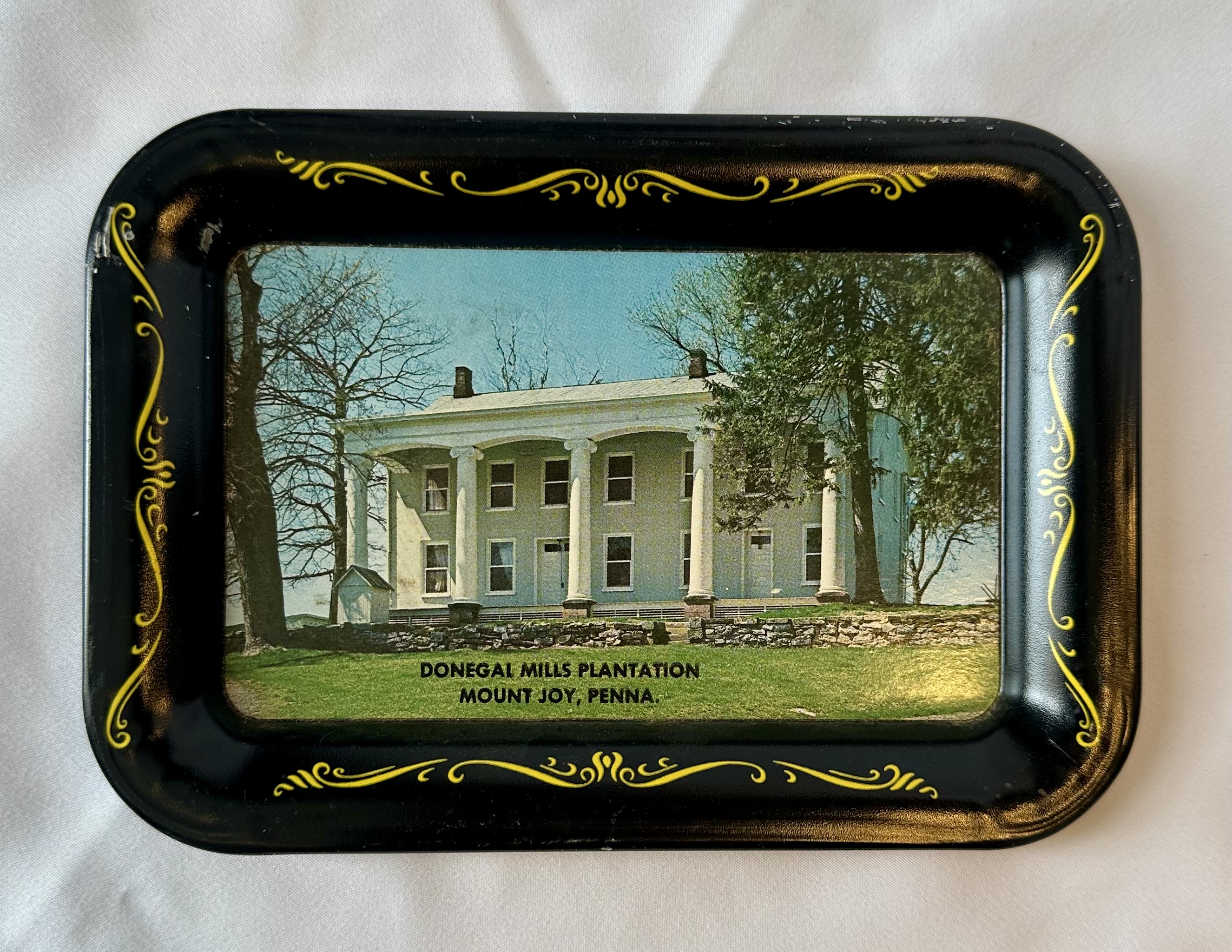 Souvenir Trays, Lancaster, PA, “Donegal Mills Plantation small tray,” MJAHS Online Inventory, accessed December 20, 2025, https://mountjoyhistory.com/inventory/items/show/12932.