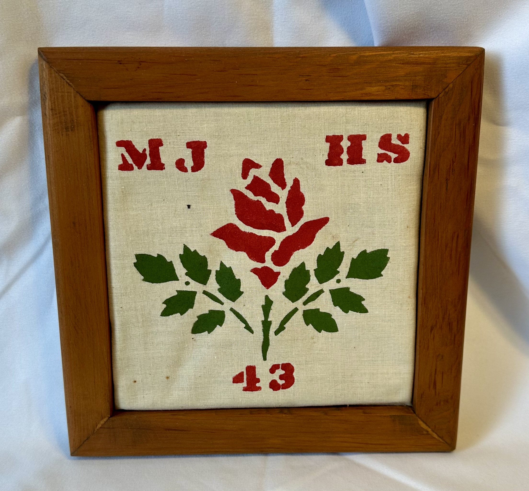 Mount Joy High School class of '43 stenciled rose in wood frame