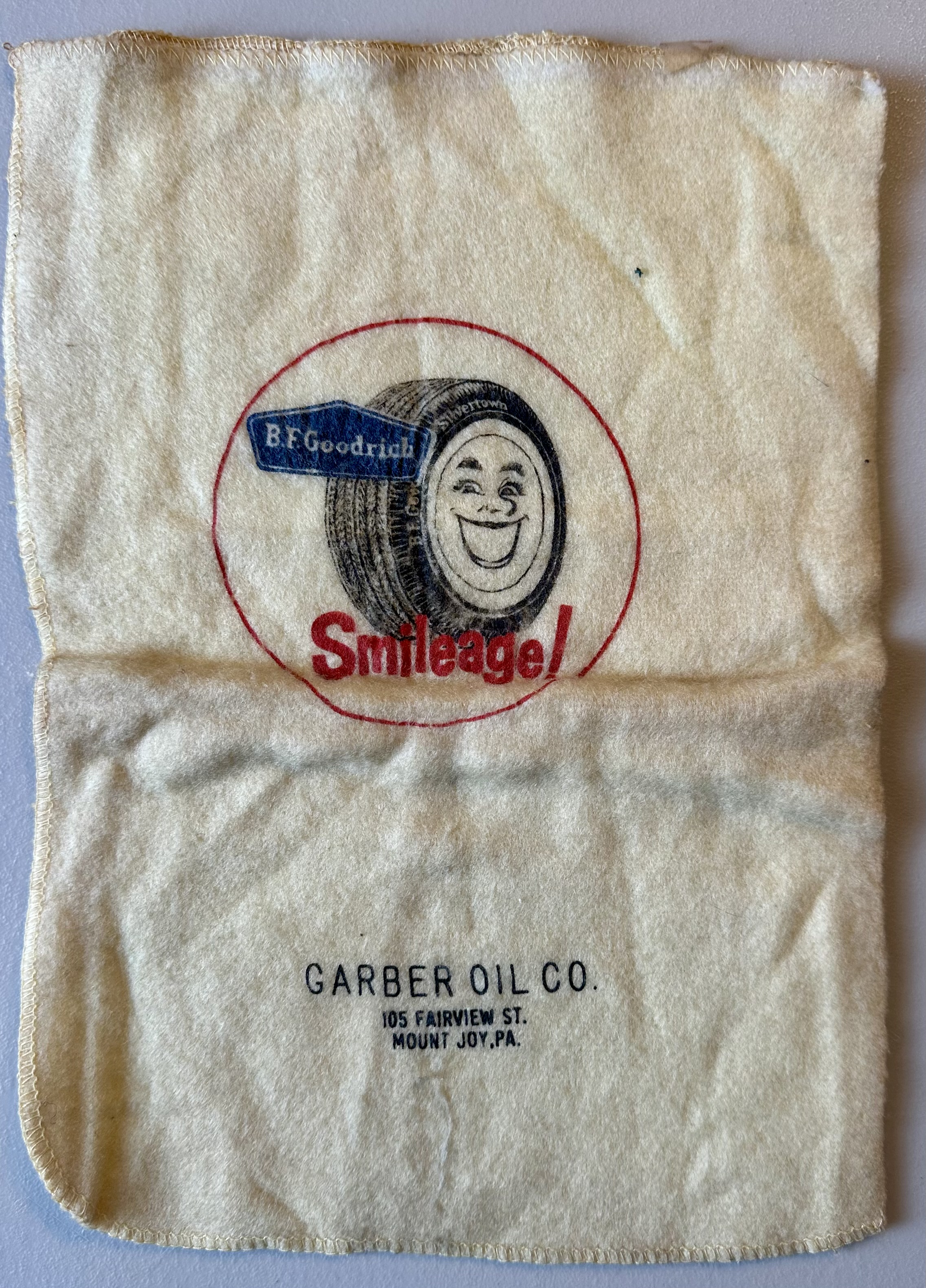 “Garber Oil Co., 105 Fairview St., soft cloth bag, BF Goodrich Smileage!,” MJAHS Online Inventory, accessed December 19, 2025, https://mountjoyhistory.com/inventory/items/show/13037.