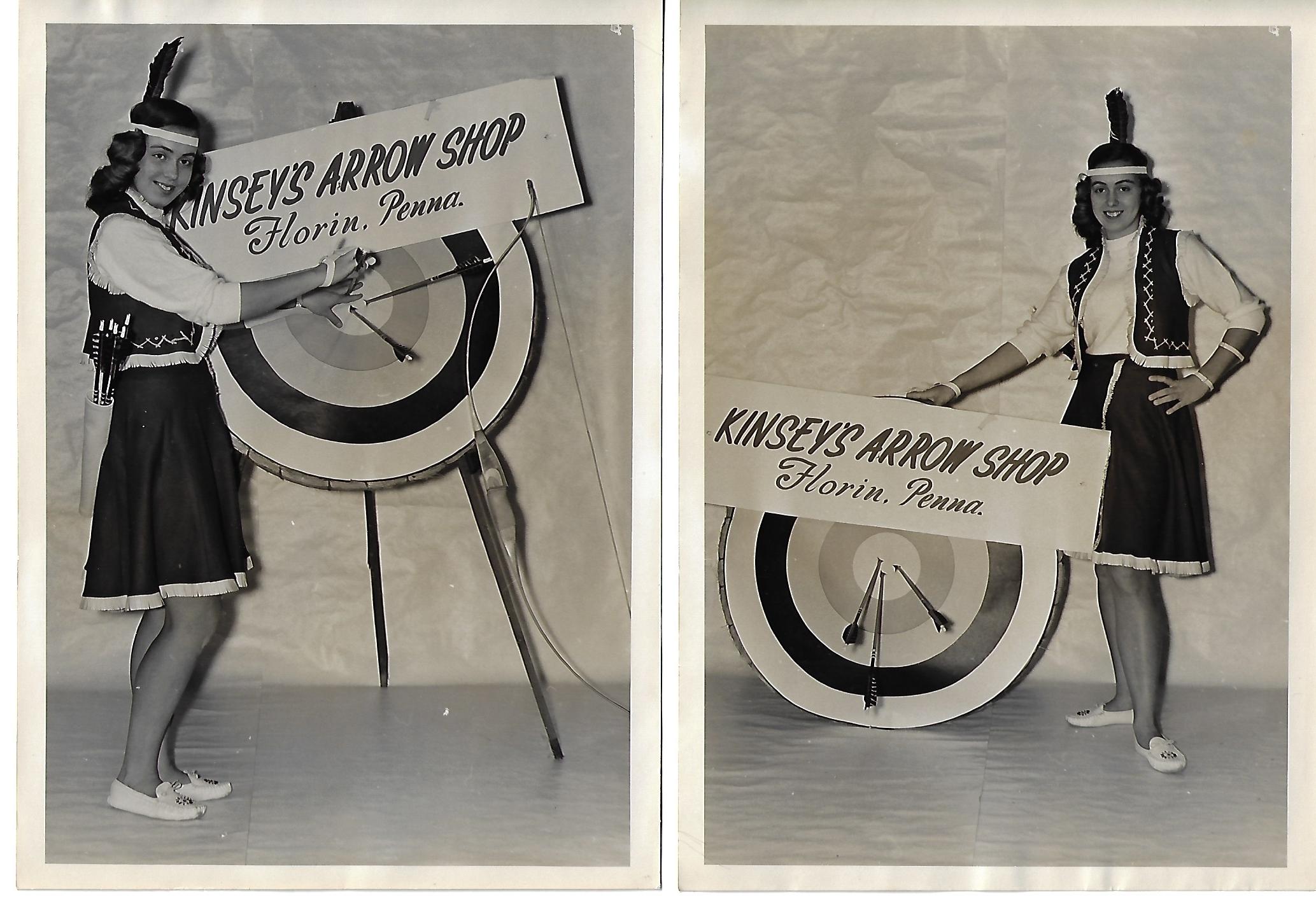 Kinsey's Arrow Shop, advertisement, photos, girl dressed as Indian