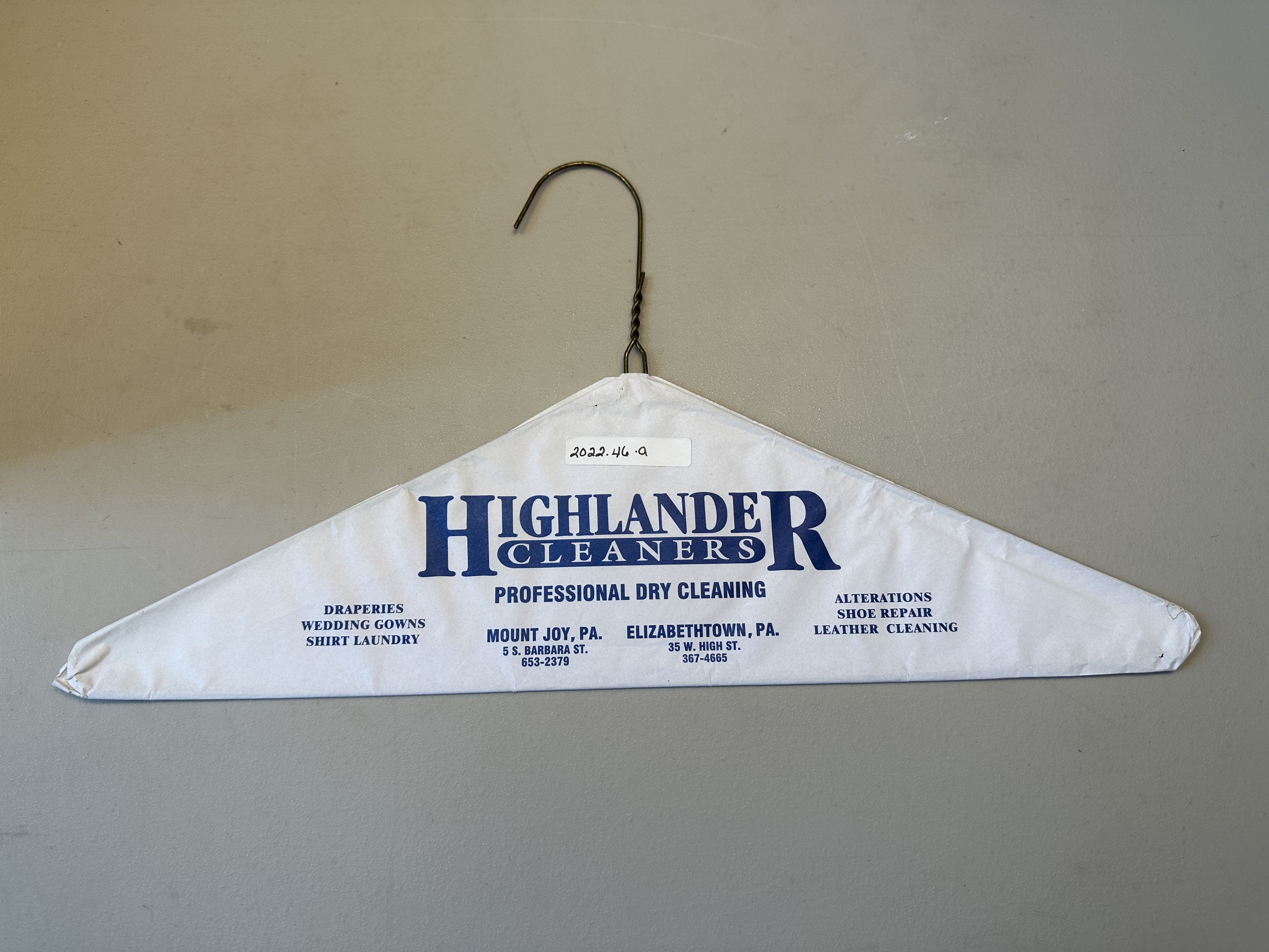 “Highland Cleaner's metal hanger,” MJAHS Online Inventory, accessed October 15, 2025, https://www.mountjoyhistory.com/inventory/items/show/11902.