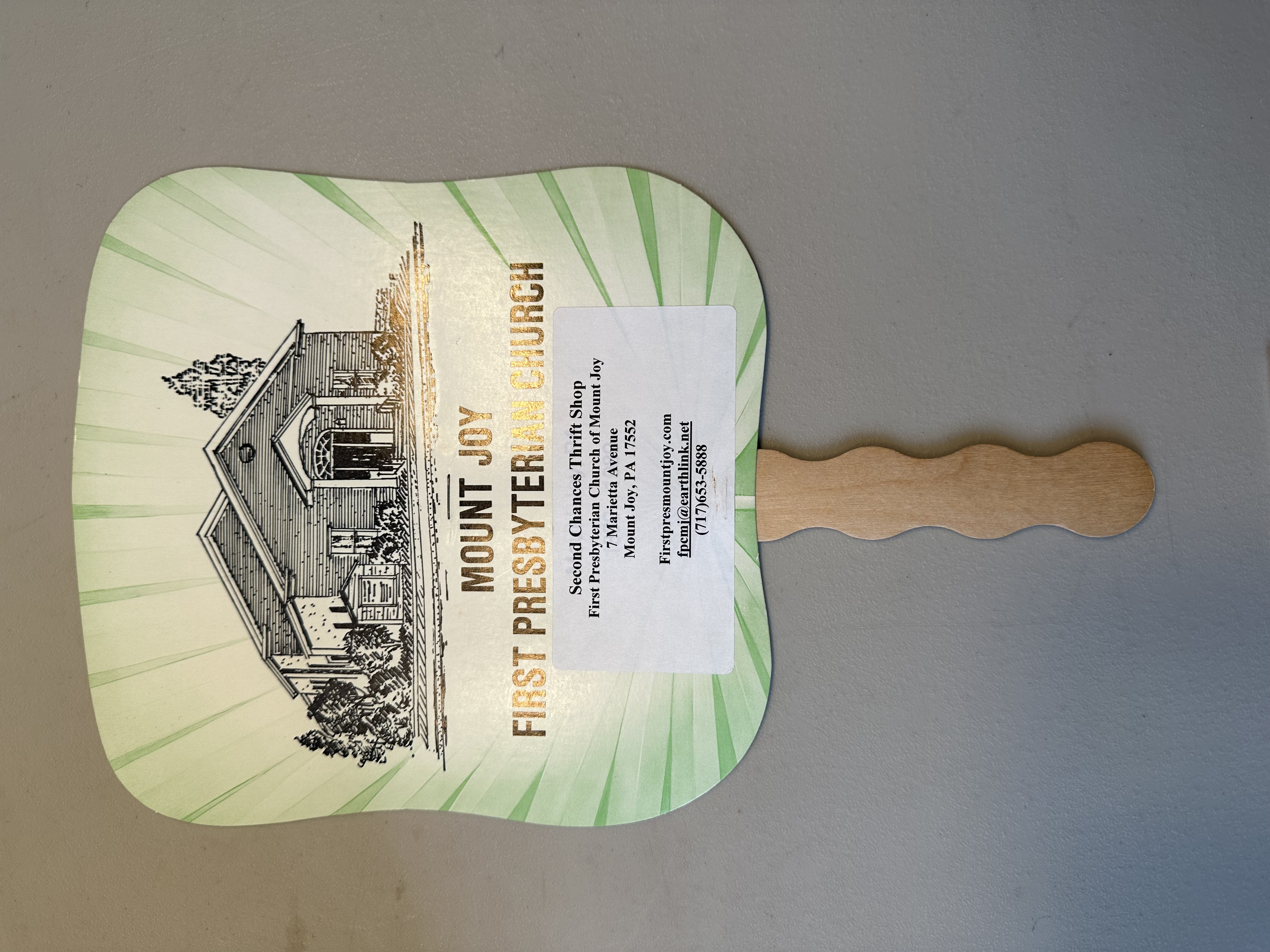 “Mount Joy Presbyterian Church hand fan,” MJAHS Online Inventory, accessed October 16, 2025, https://www.mountjoyhistory.com/inventory/items/show/11904.